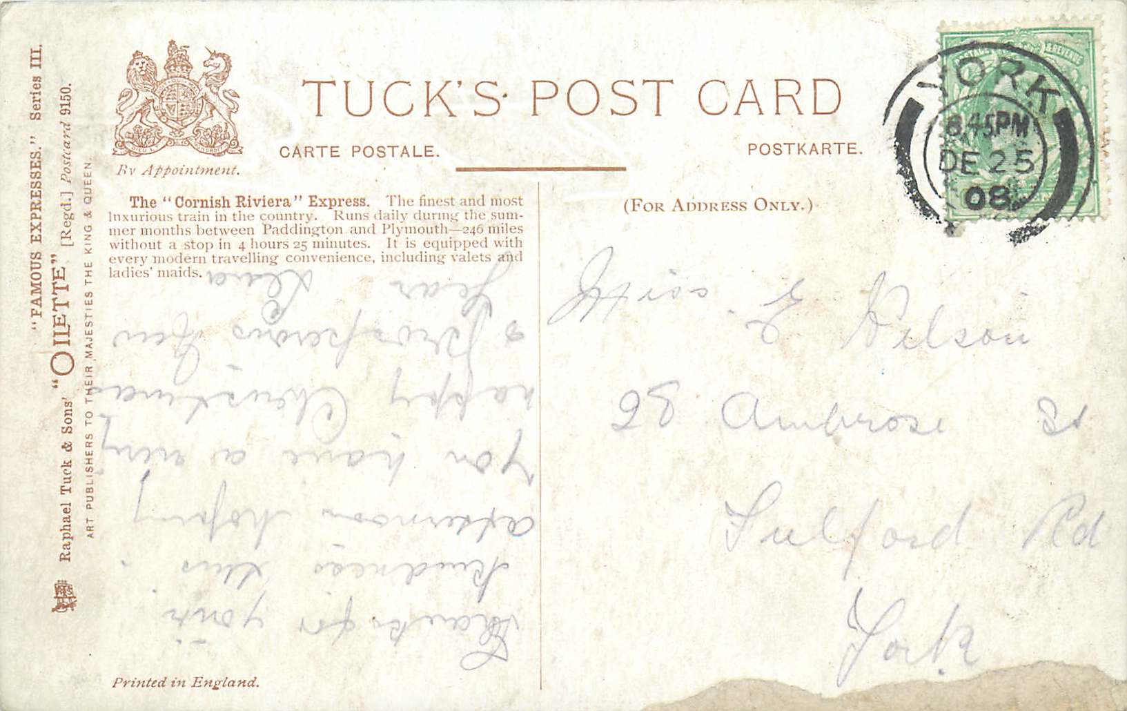 THE CORNISH RIVIERA EXPRESS on back of card. comes opt. in blue EXPRESS CHRISTMAS GREETINGS