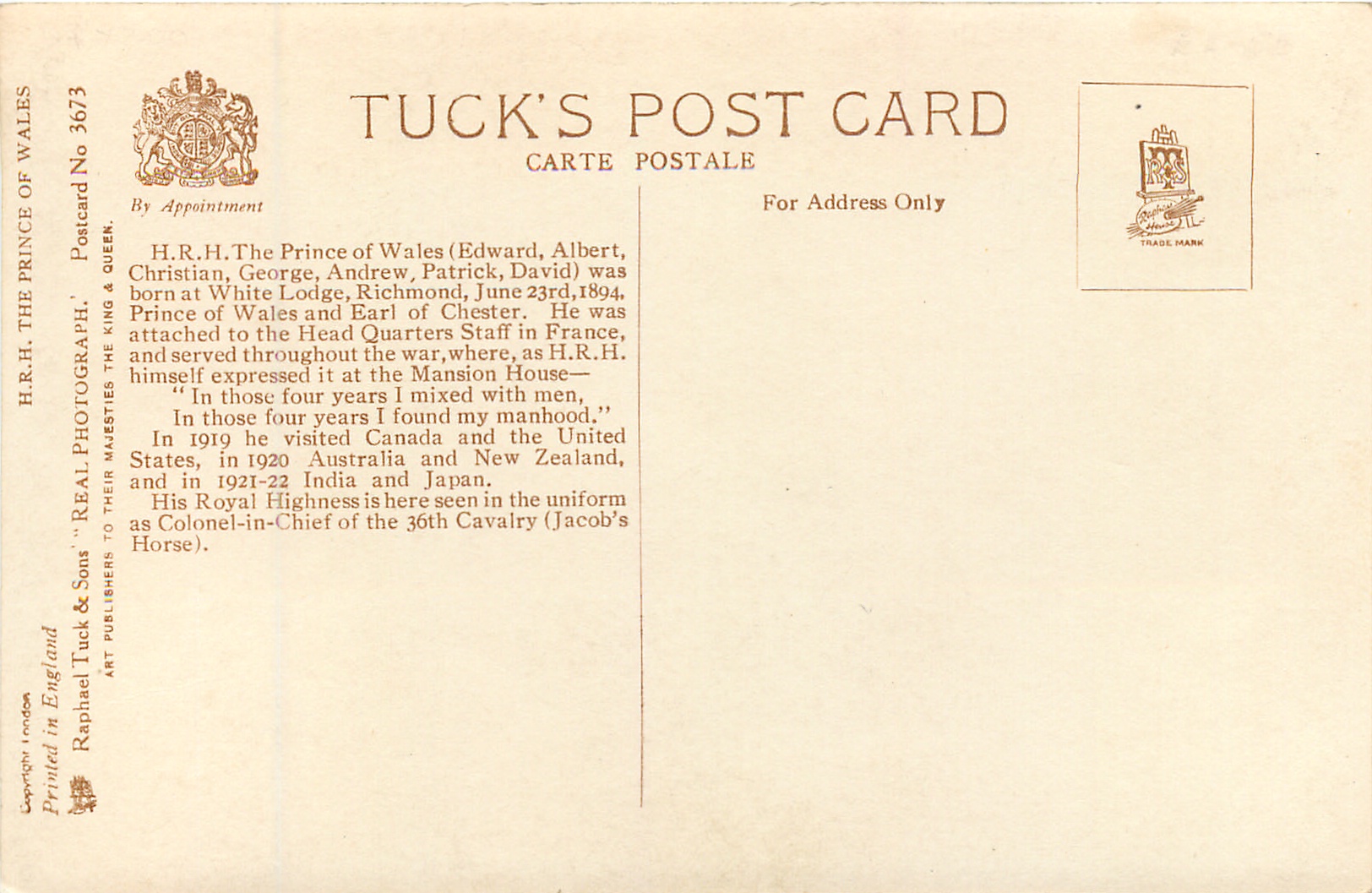 REAL PHOTOGRAPH, PRINTED IN ENGLAND, COPYRIGHT LONDON, listed in 1930 POSTCARD Catalogue, same image, larger OILETTE 9888, comes w/o series title, 2 backs