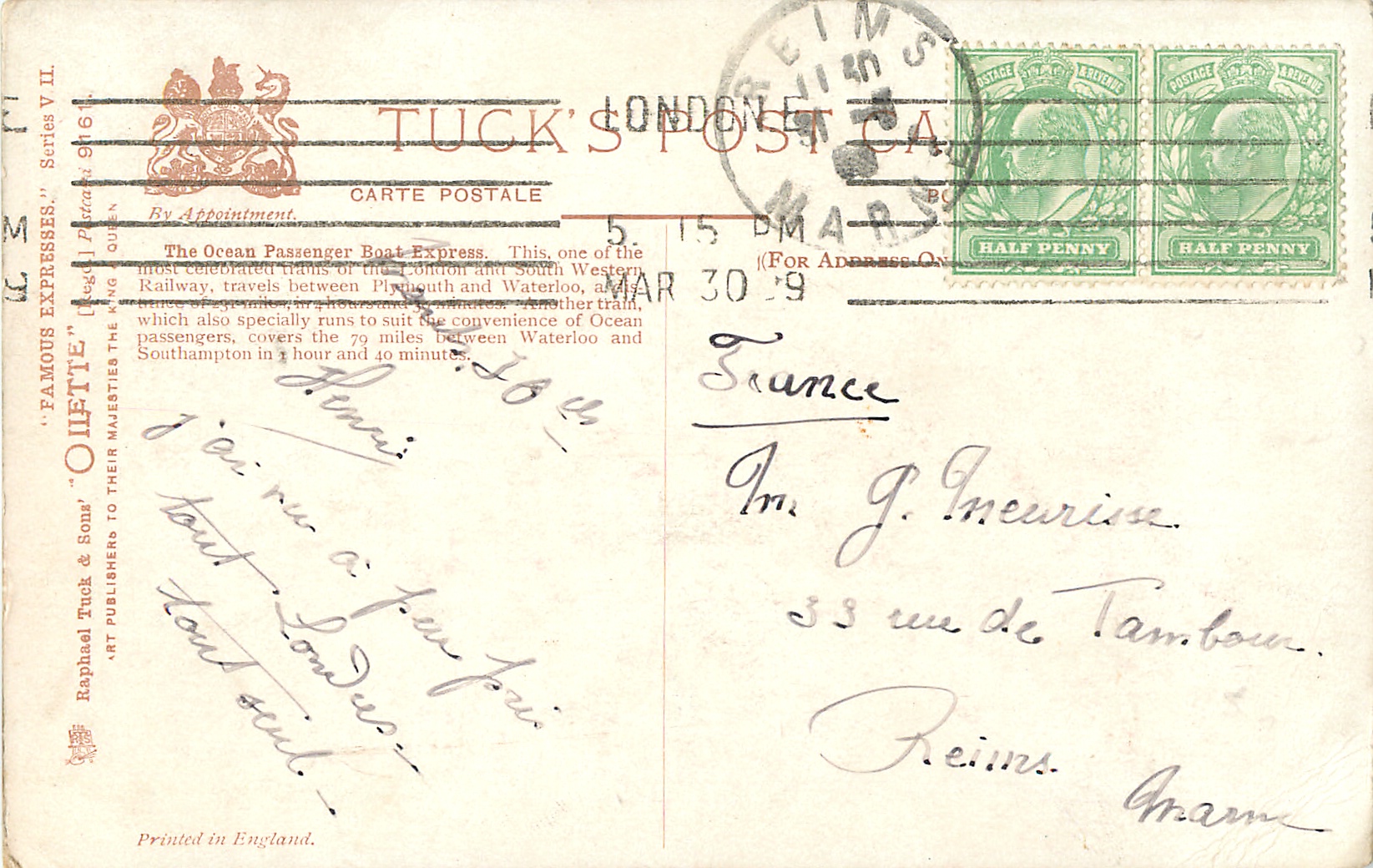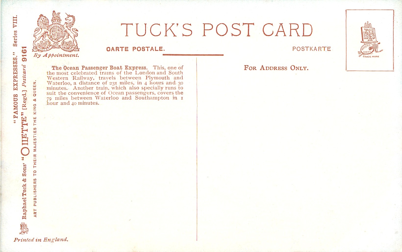 OILETTE, PRINTED IN ENGLAND, with or w/o COPYRIGHT LONDON, listed in 1908/1909(USA) & 1911/1912 & 1913/1914 & 1926/1927 Postcard Catalogues