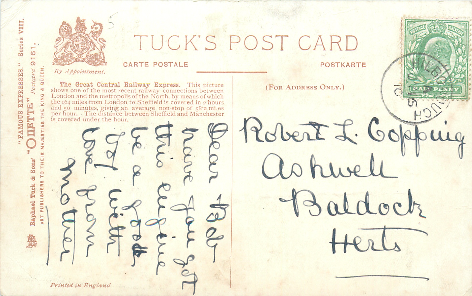 OILETTE, PRINTED IN ENGLAND, with or w/o COPYRIGHT LONDON, listed in 1908/1909(USA) & 1911/1912 & 1913/1914 & 1926/1927 Postcard Catalogues