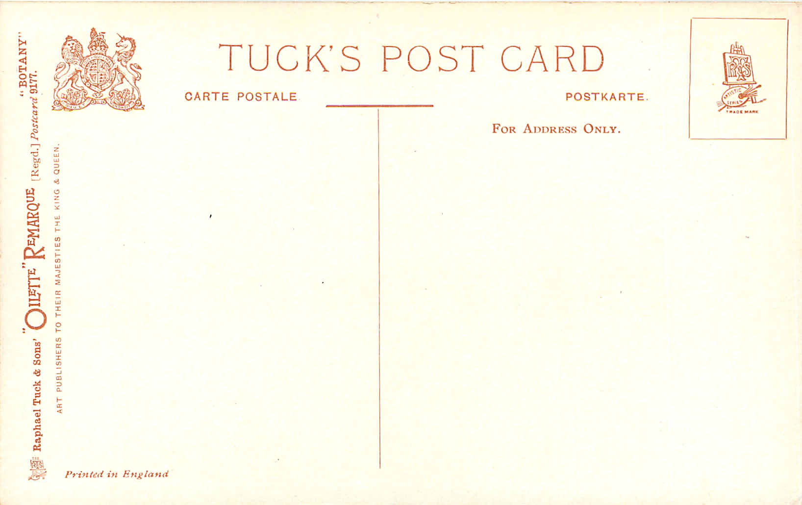 OILETTE REMARQUE, PRINTED IN ENGLAND, listed in 1908/1909 & 1911/1912 & 1912/1913 & 1913/1914 Postcard Catalogues