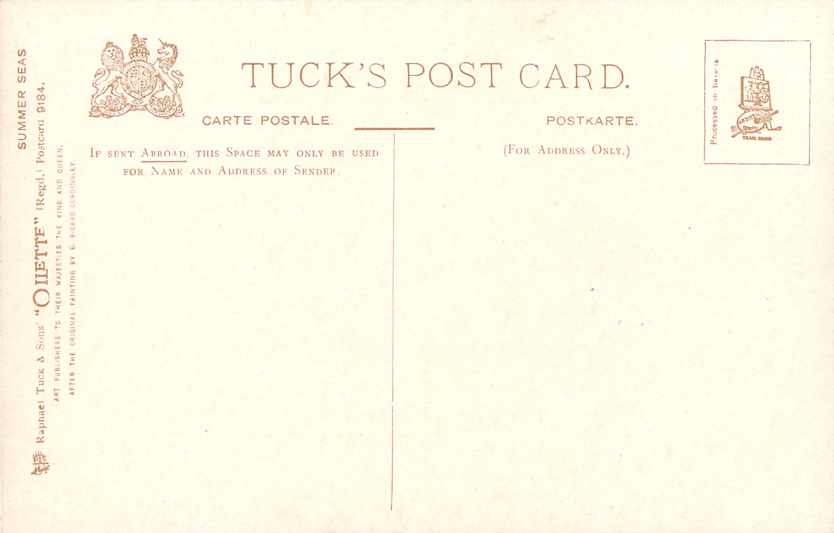OILETTE, PROCESSED IN BAVARIA (in or outside stamp box), listed in 1908/1909 & 1911/1912 Postcard Catalogue