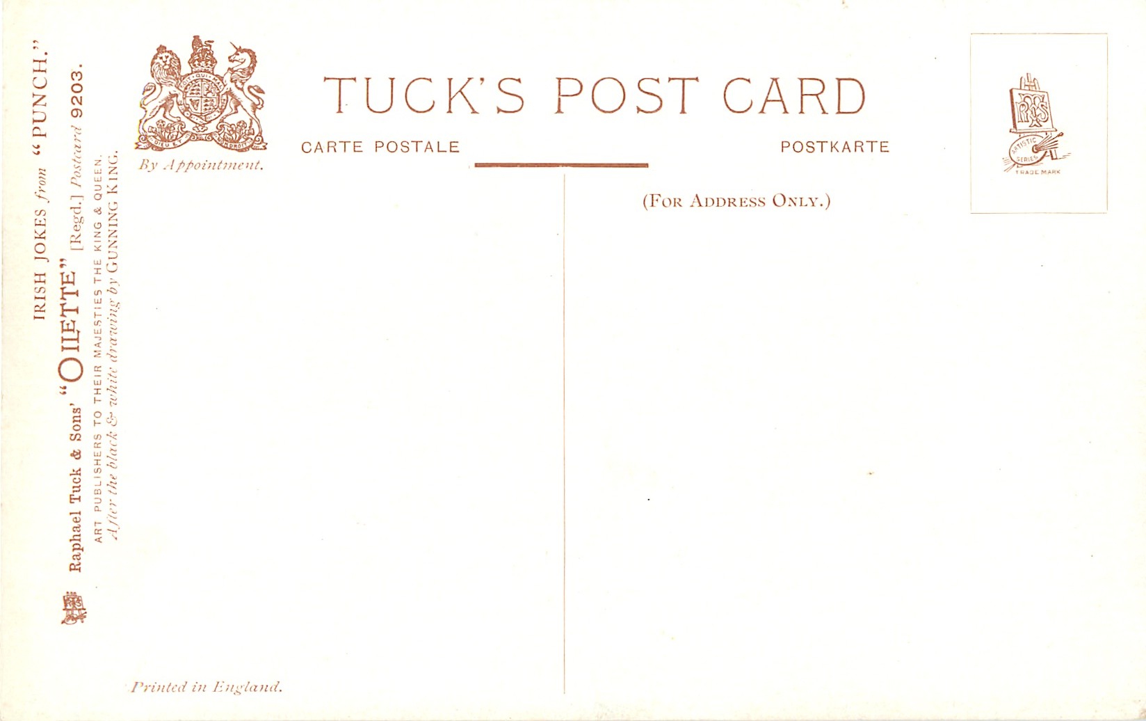 OILETTE, PRINTED IN ENGLAND, listed in 1908/1909 & 1911/1912 Postcard Catalogue