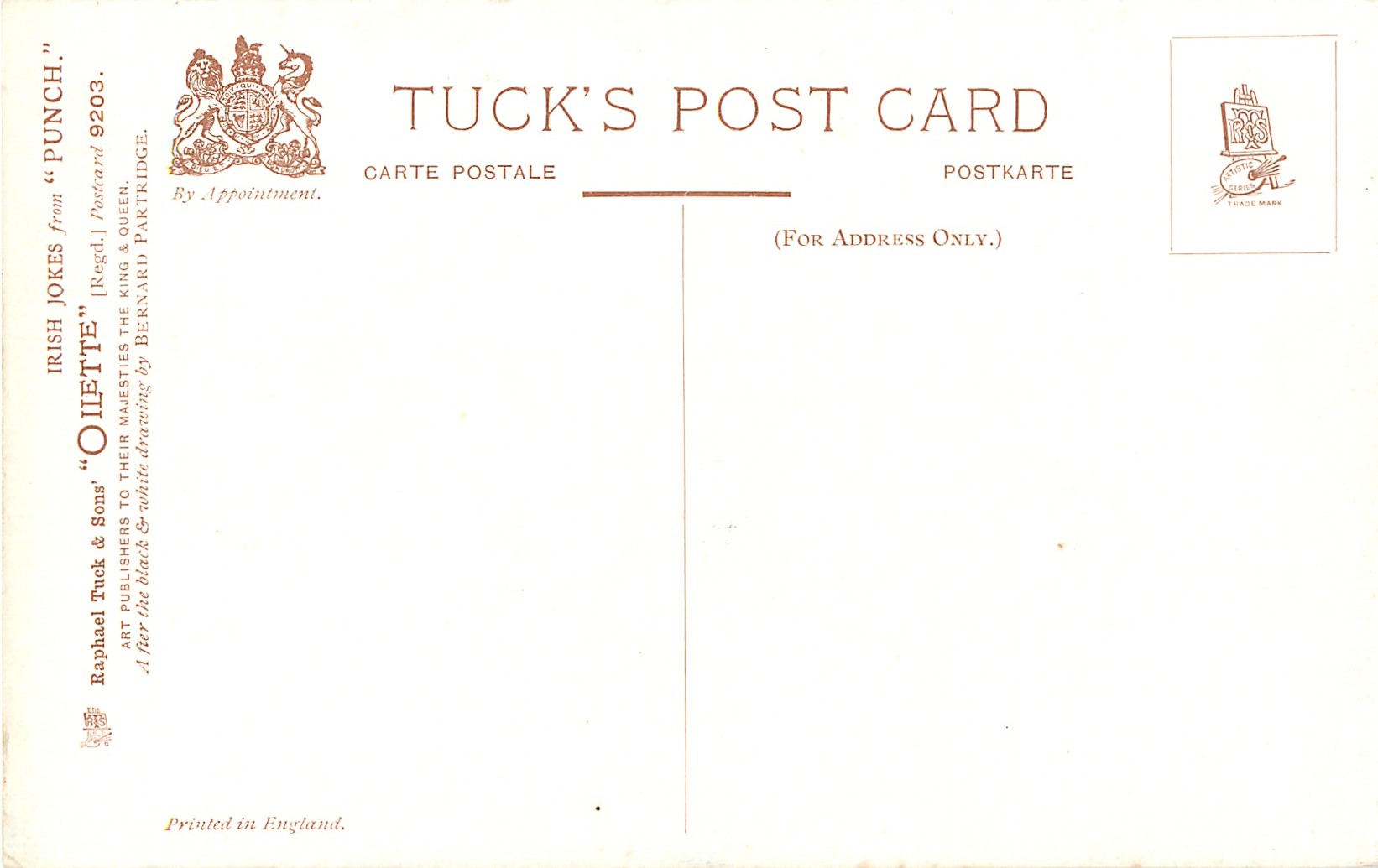 OILETTE, PRINTED IN ENGLAND, listed in 1908/1909 & 1911/1912 Postcard Catalogue