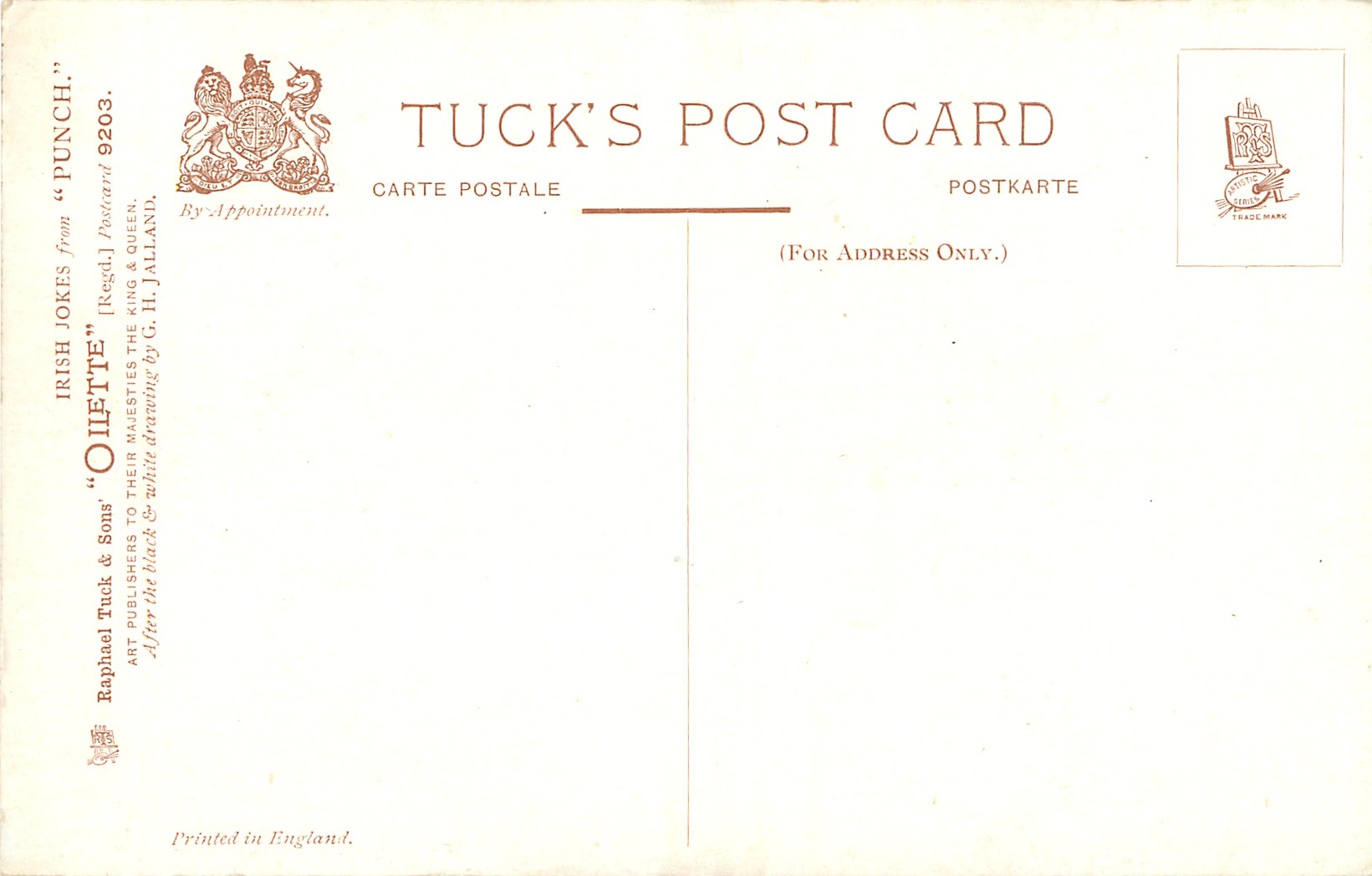 OILETTE, PRINTED IN ENGLAND, listed in 1908/1909 & 1911/1912 Postcard Catalogue