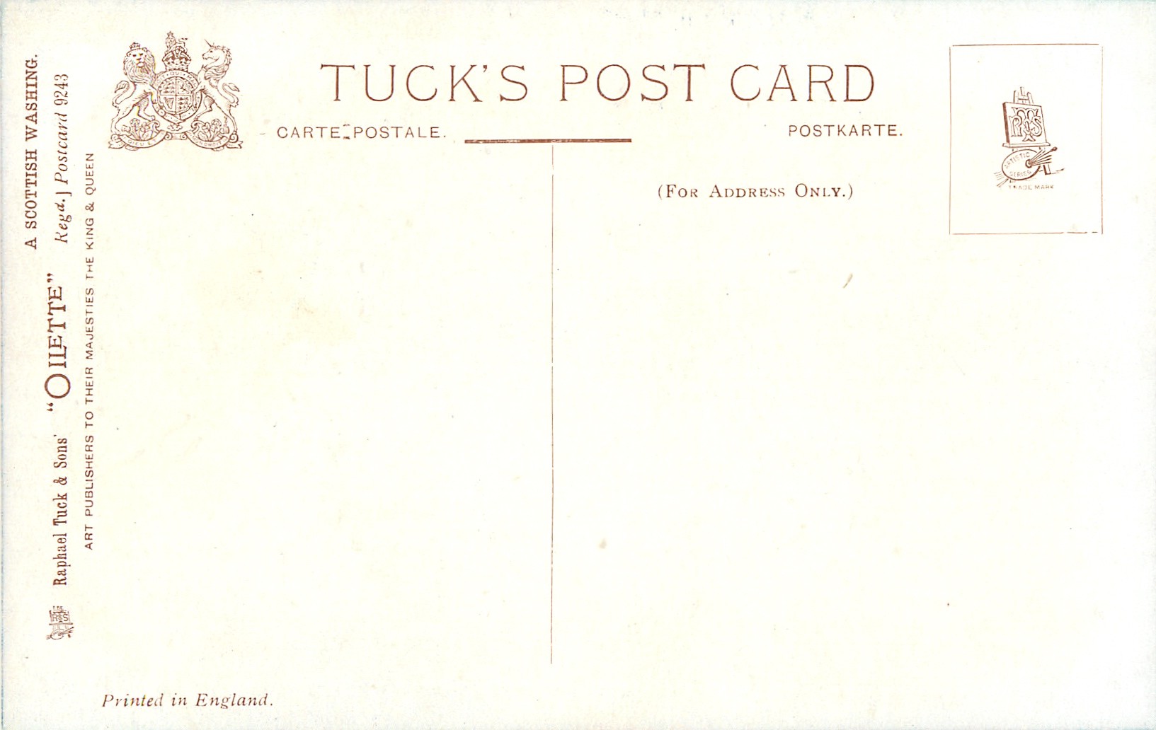OILETTE, PRINTED IN ENGLAND with or w/o COPYRIGHT LONDON, listed in 1908/1909 & 1911/1912 & 1913/1914 Postcard Catalogues
