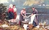 four women, two wringing wash, two with feet in tub