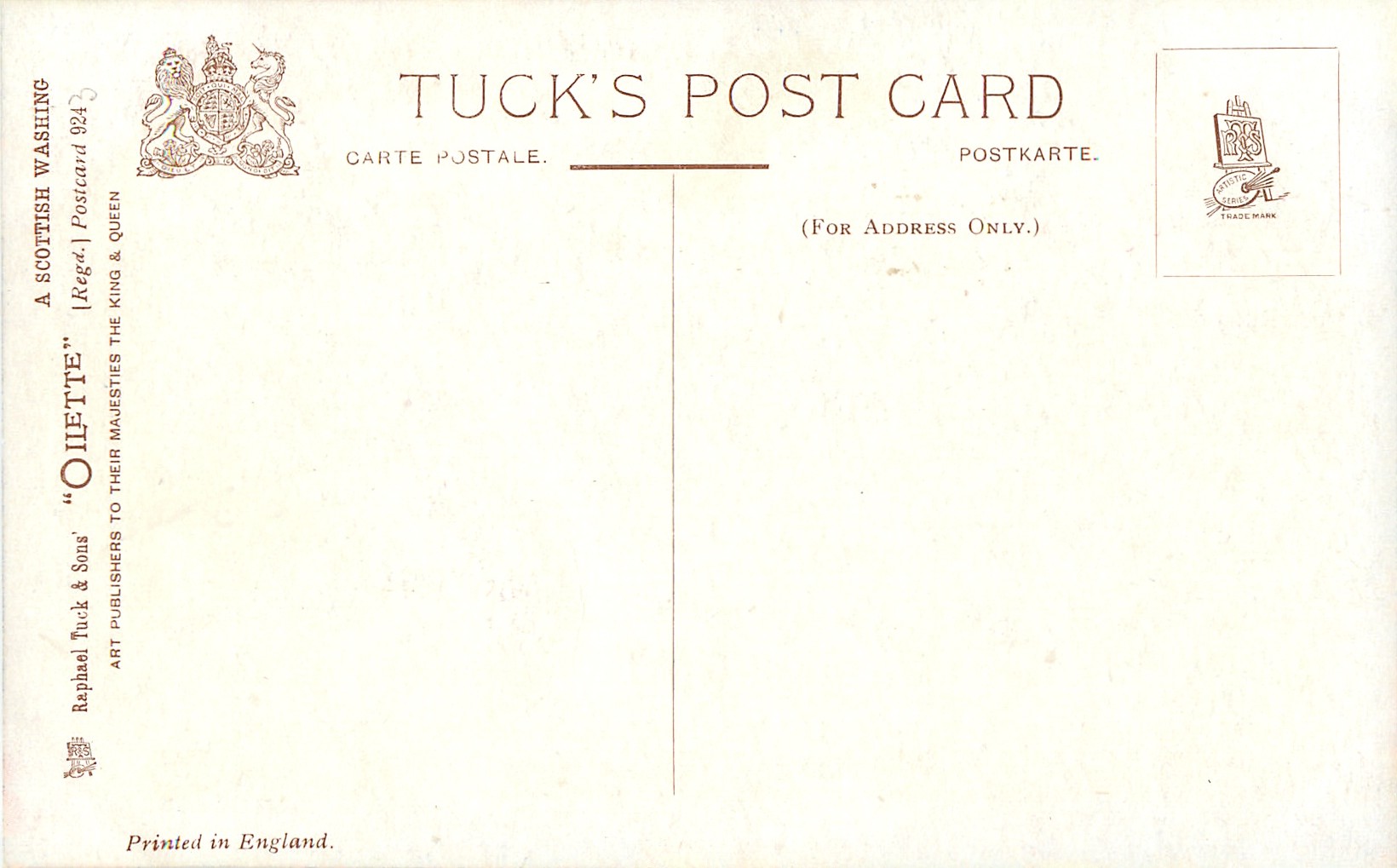 OILETTE, PRINTED IN ENGLAND with or w/o COPYRIGHT LONDON, listed in 1908/1909 & 1911/1912 & 1913/1914 Postcard Catalogues