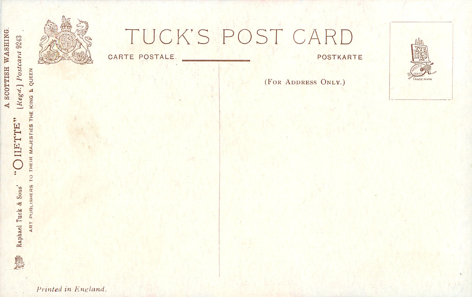 OILETTE, PRINTED IN ENGLAND with or w/o COPYRIGHT LONDON, listed in 1908/1909 & 1911/1912 & 1913/1914 Postcard Catalogues