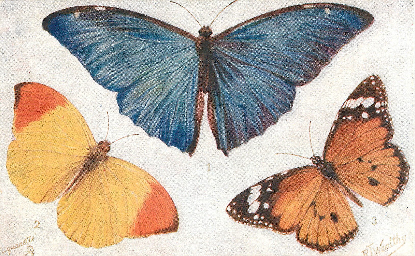 FOREIGN BUTTERFLIES- I MORPHO ADONIS,| II-DANAUS CHRYSIPPUS(MALE)
