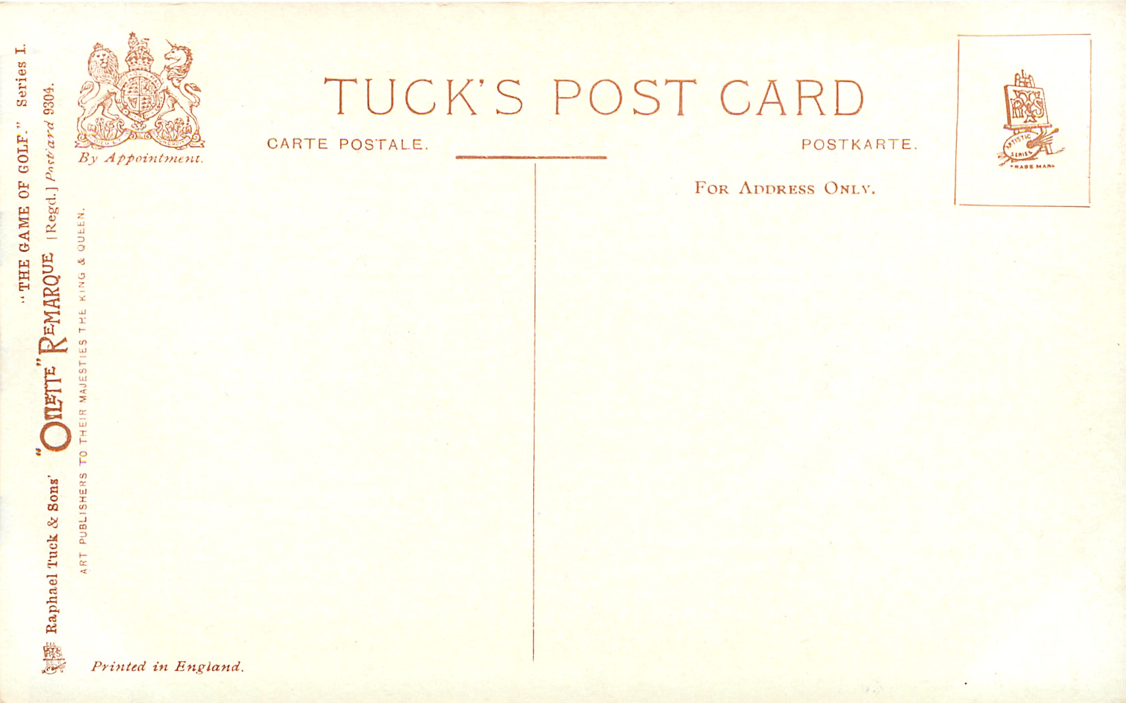 OILETTE REMARQUE, PRINTED IN ENGLAND, listed in 1908/1909 & 1911/1912 & 1912/1913 &1913/1914 POSTCARD Catalogues
