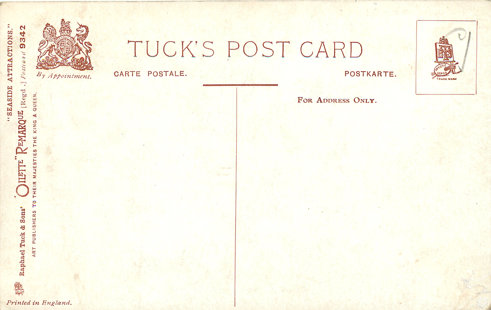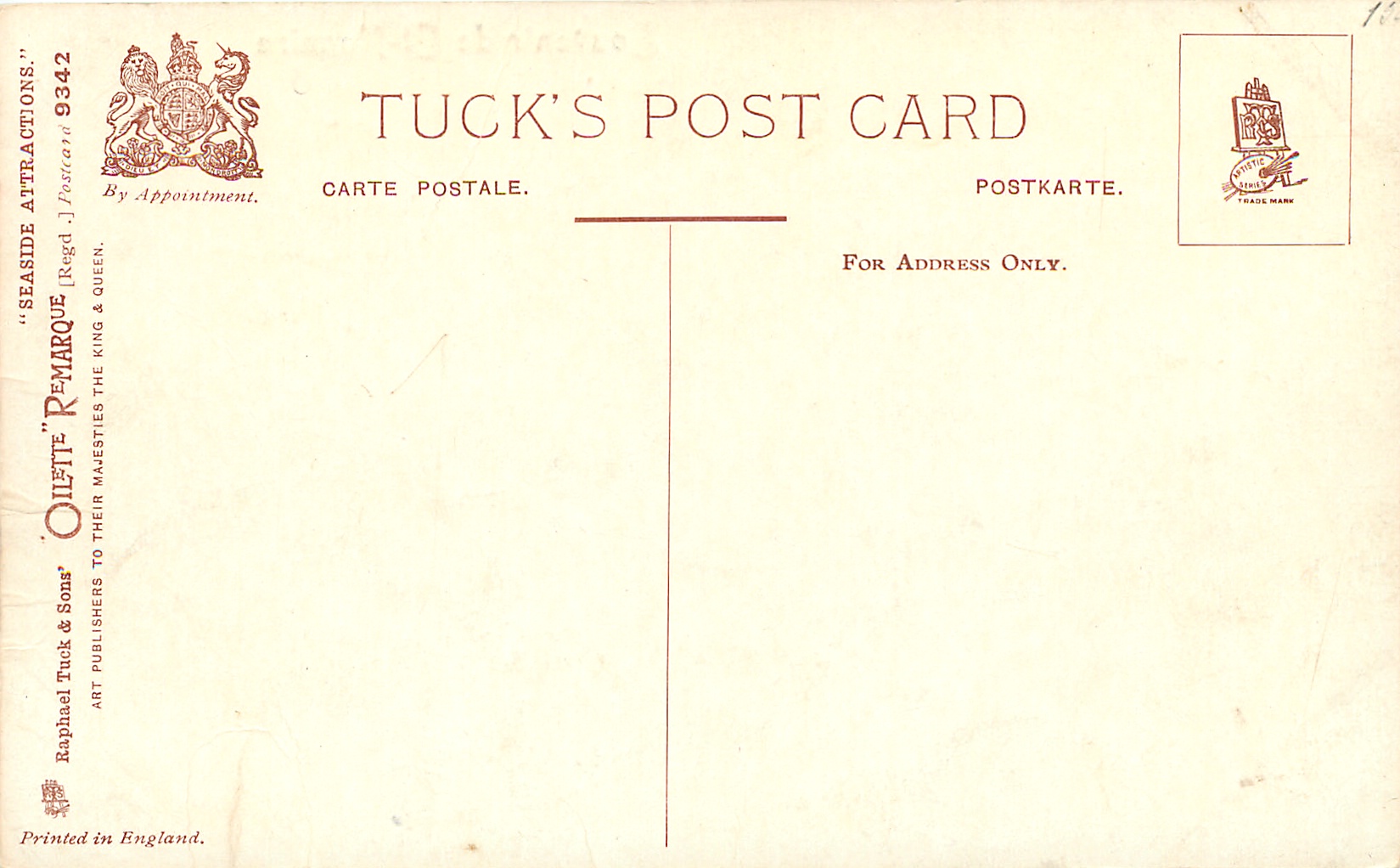 OILETTE REMARQUE, PRINTED IN ENLAND, listed in 1908/1909 & 1914 Postcard Catalogue