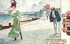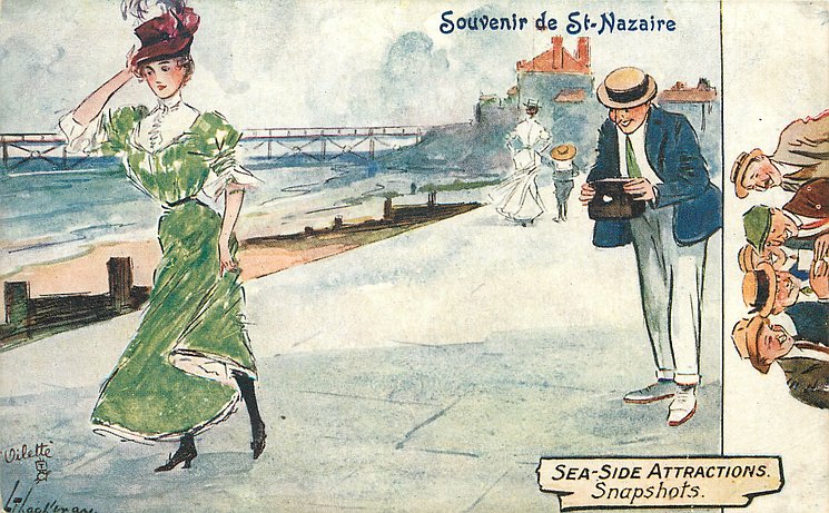 same image & card title 8553 GLOSSO OILETTE, AT THE SEASIDE, comes opt. in blue SOUVENIR DE ST. NAZAIRE