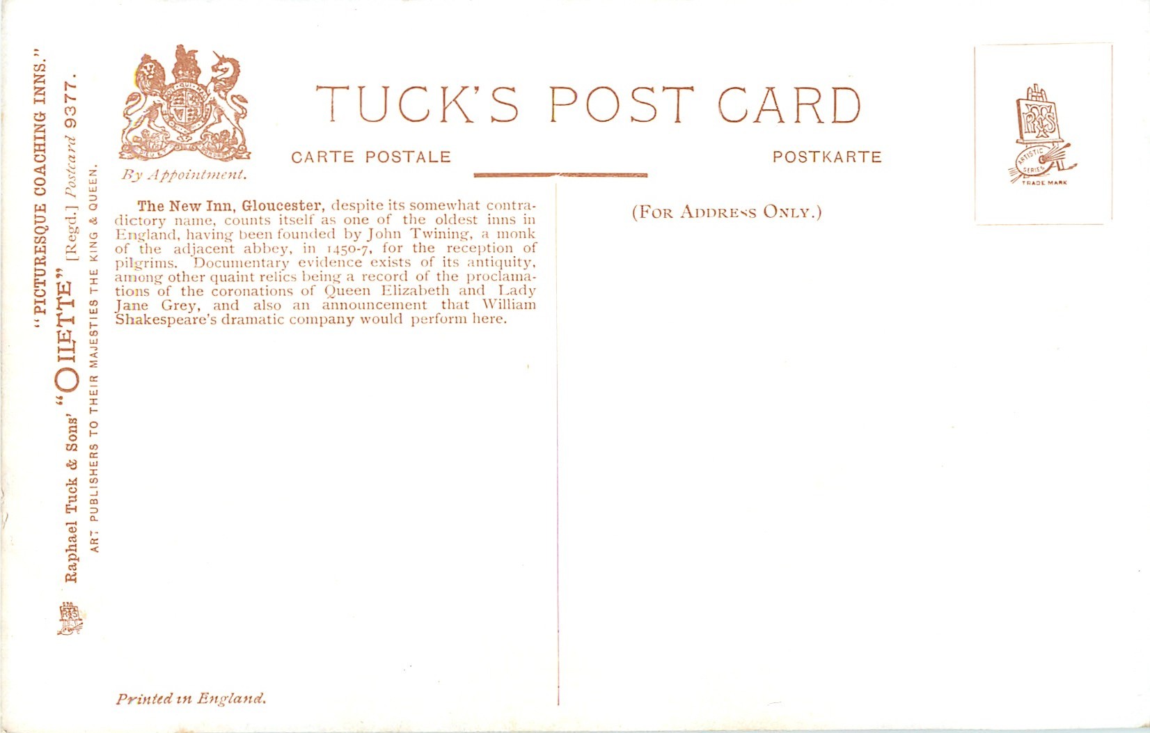 OILETTE, PRINTED IN ENGLAND, listed in 1908/1909(USA) & 1911/1912 Postcard Catalogue