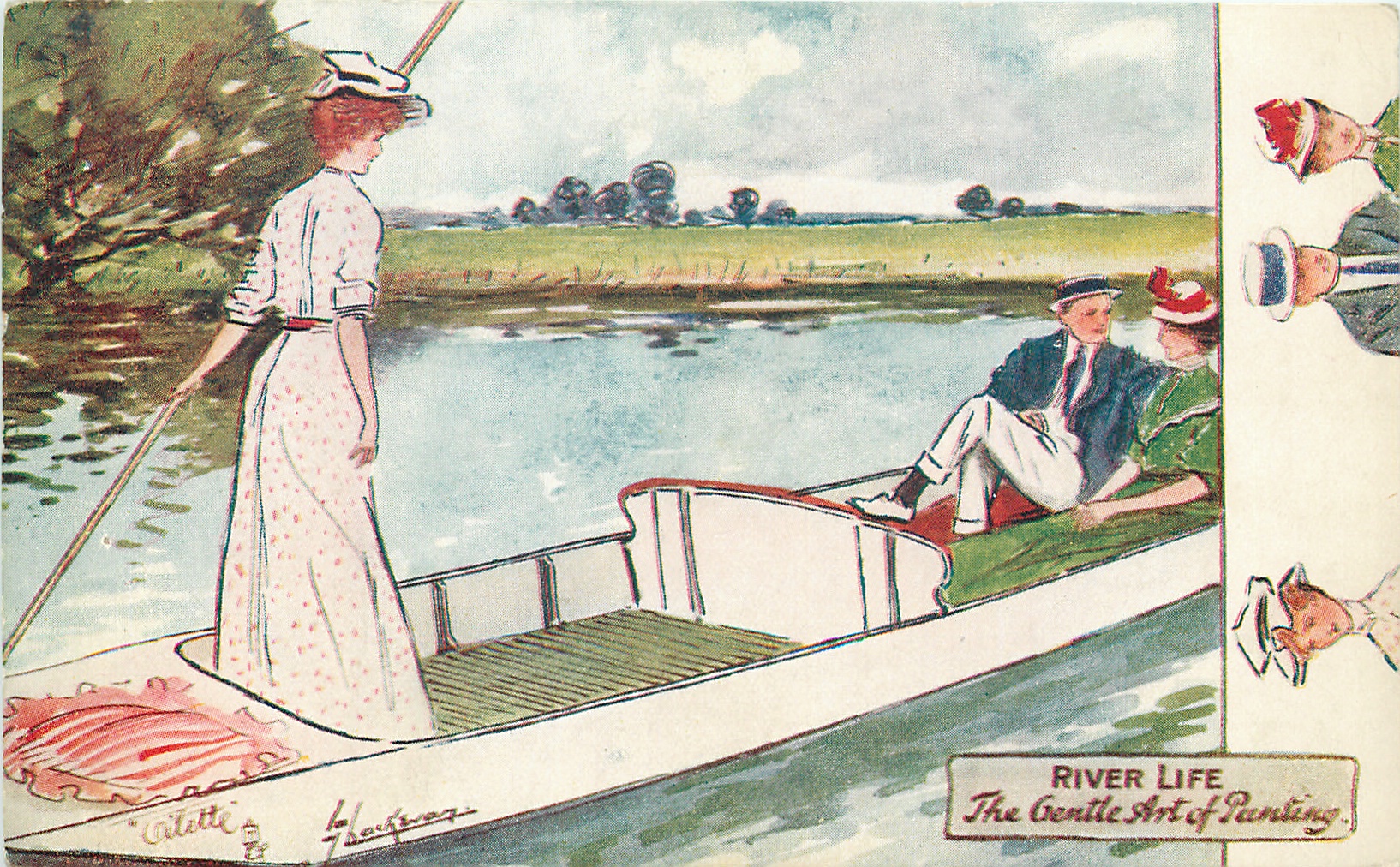 THE GENTLE ART OF PUNTING girl standing in punt couple sit at back