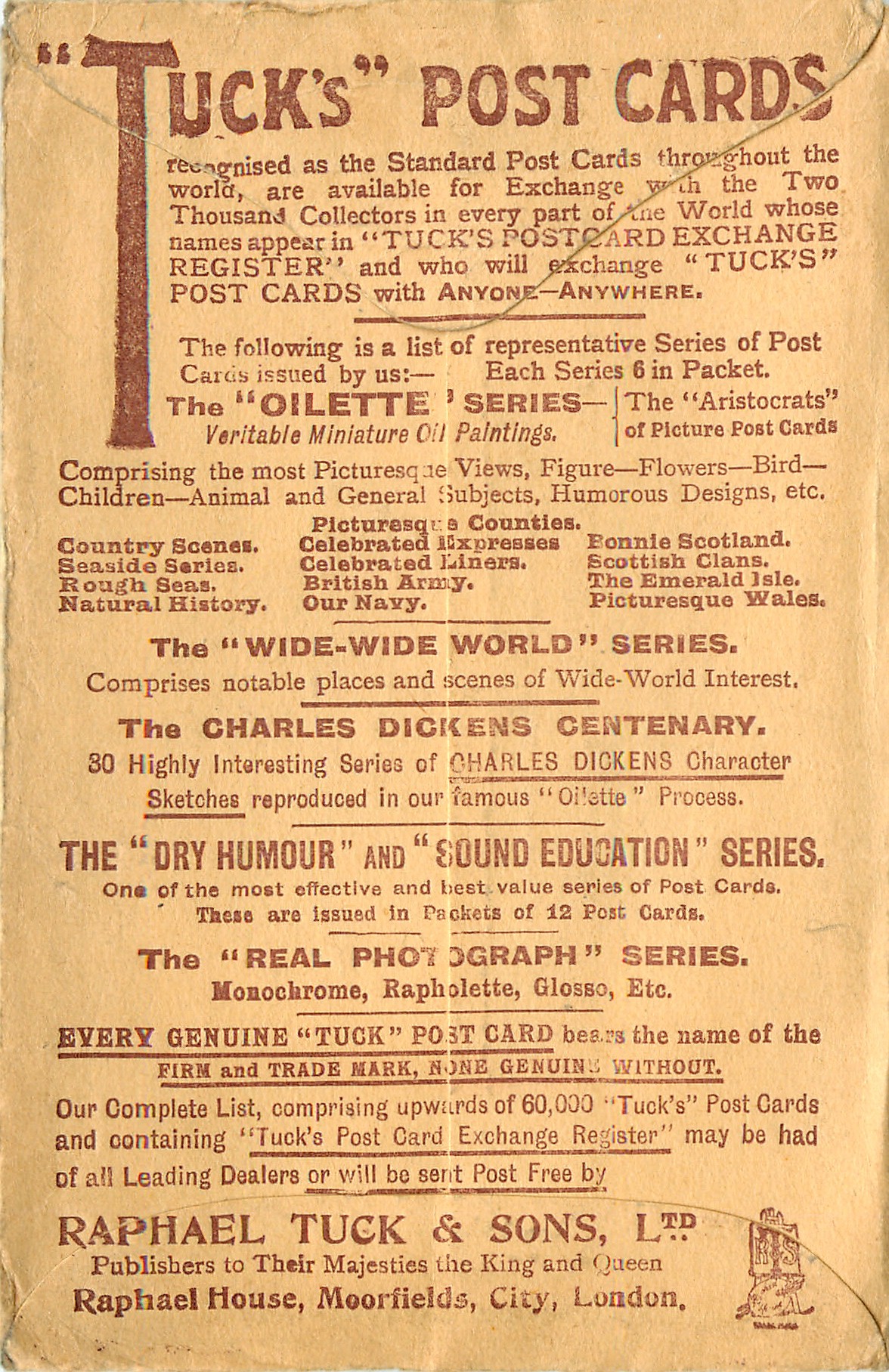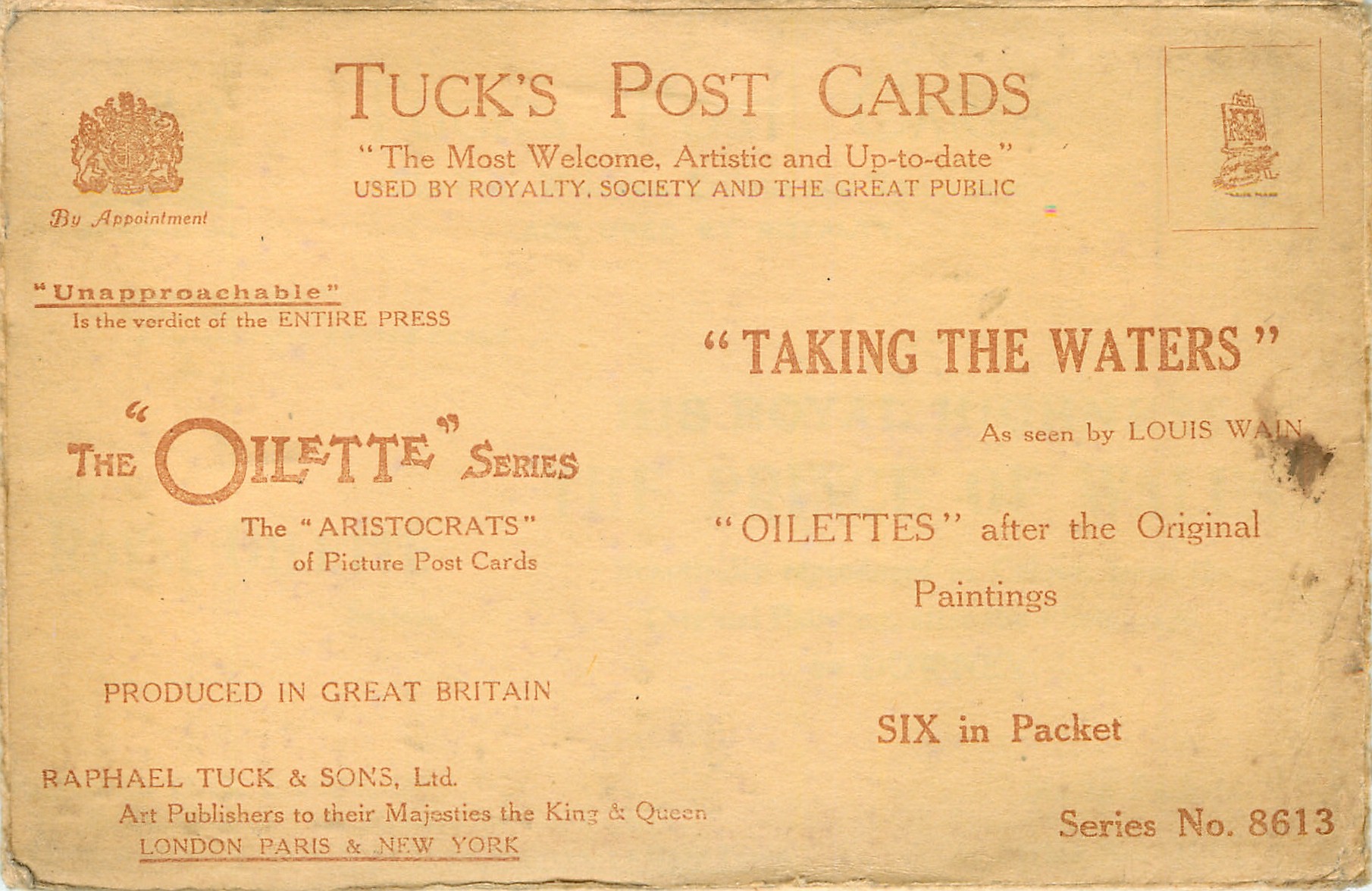 OILETTE, PRINTED IN ENGLAND, see Booth and Lund, set title come without HARROGATE