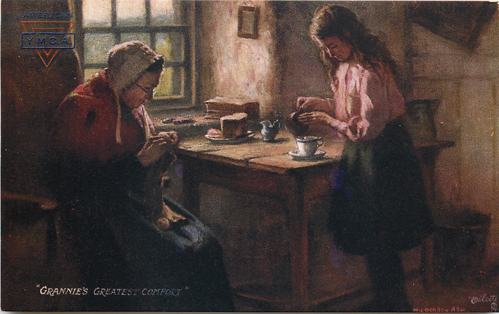 comes opt. red and blue AMERICAN Y.M.C.A., in gilt CHRISTMAS GREETINGS
