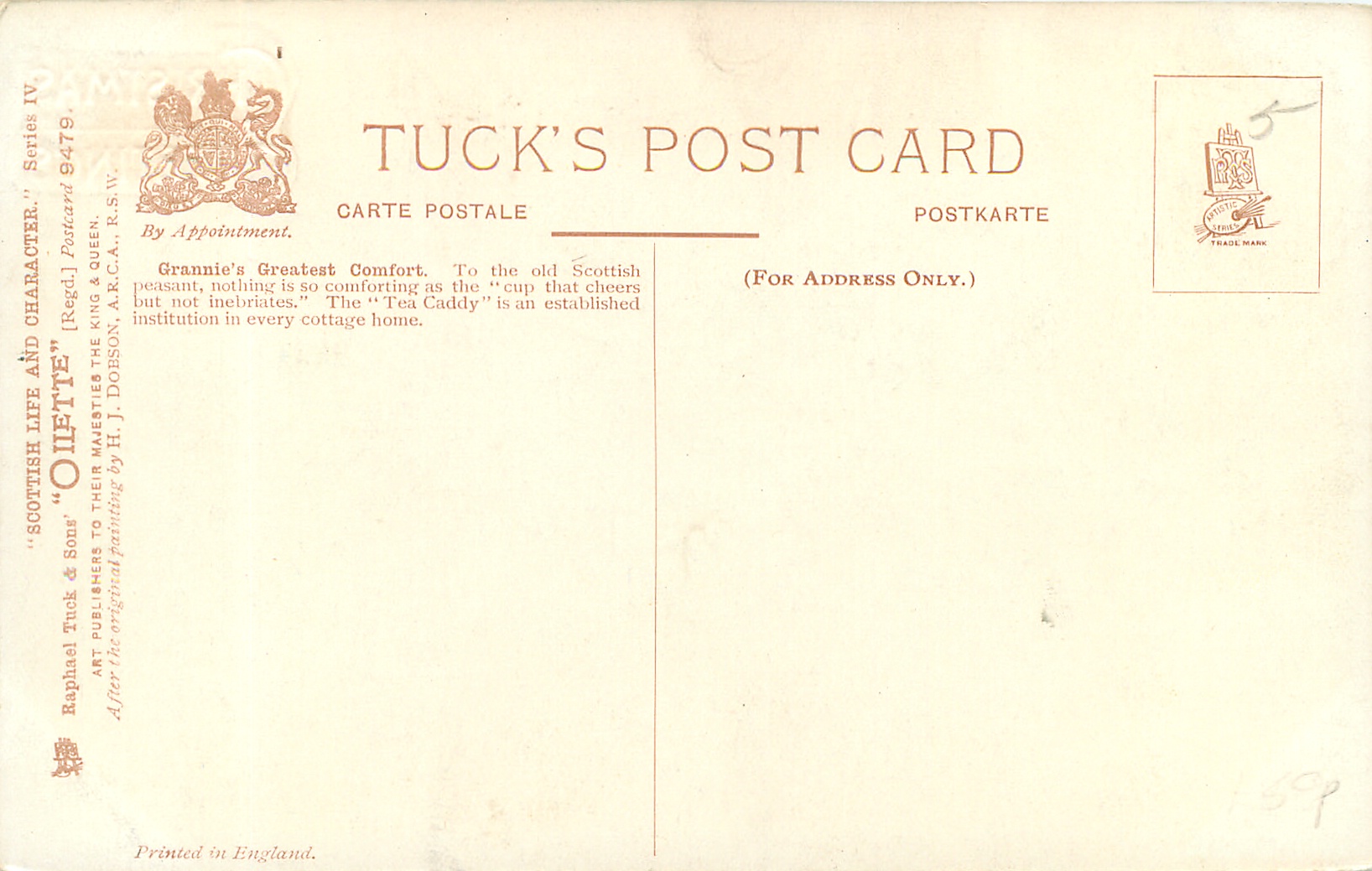 OILETTE, come Oilfacsim but not so trade-named, PRINTED IN ENGLAND, with or w/o COPYRIGHT LONDON, listed in 1908/1909 & 1911/1912 & 1913/1914 Postcard Catalogues