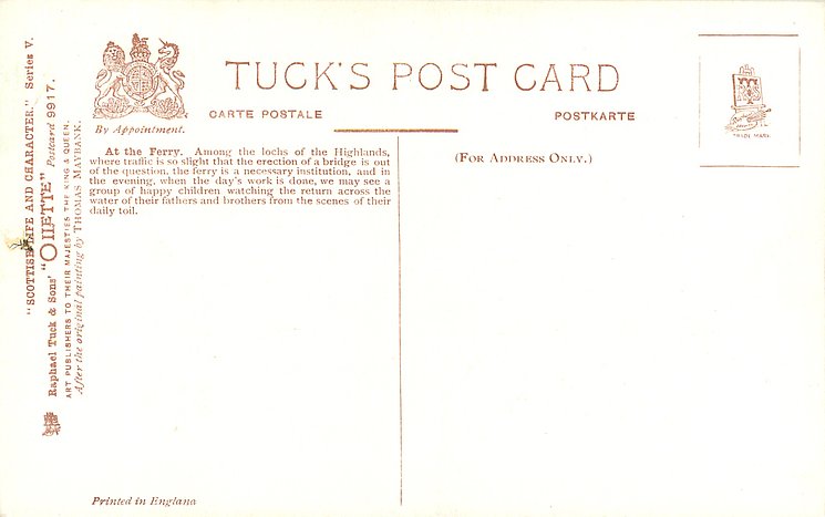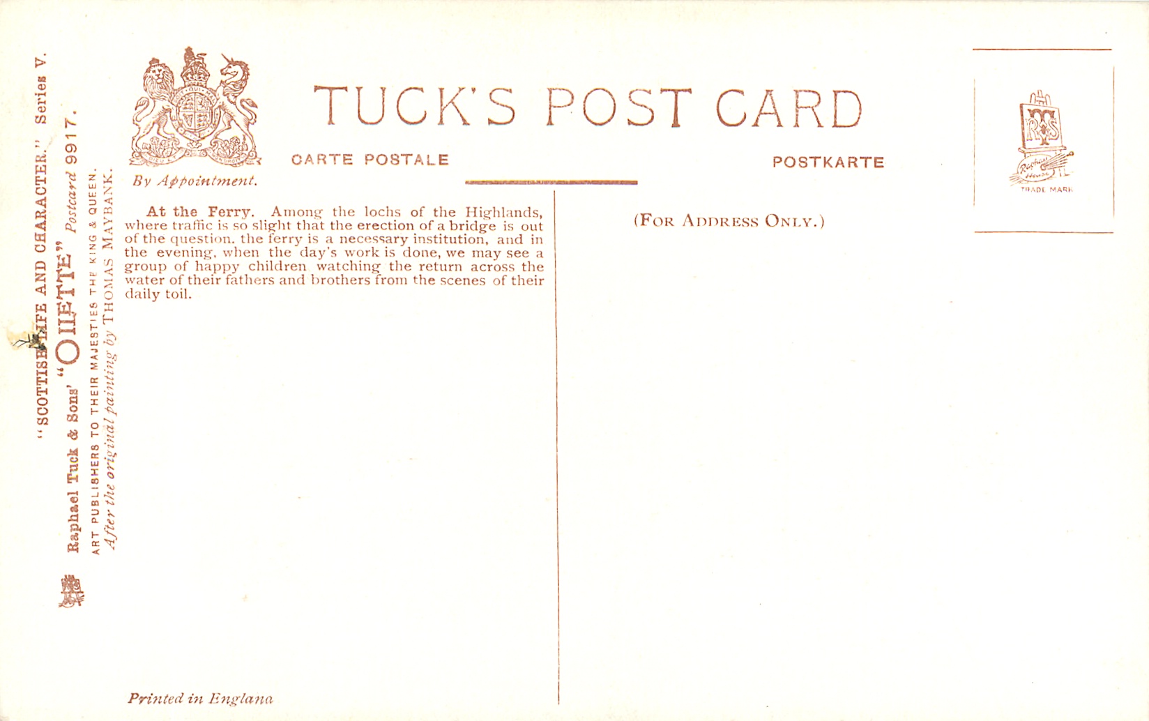 OILETTE, PRINTED IN ENGLAND, AFTER THE ORIGINAL PAINTING BY THOMAS MAYBANK, listed in 11911/1912 & 1913/1914 Postcard Catalogues