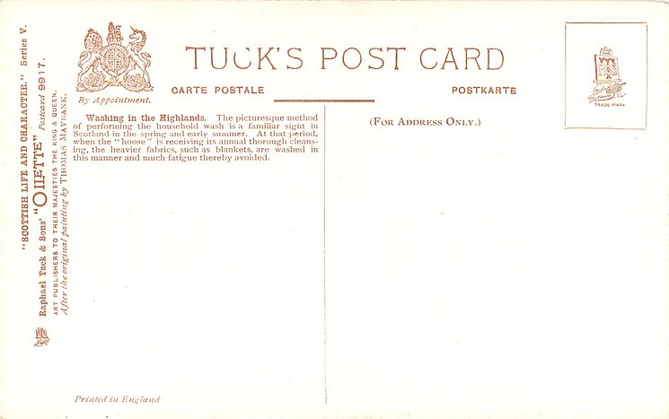 OILETTE, PRINTED IN ENGLAND, AFTER THE ORIGINAL PAINTING BY THOMAS MAYBANK, listed in 11911/1912 & 1913/1914 Postcard Catalogues