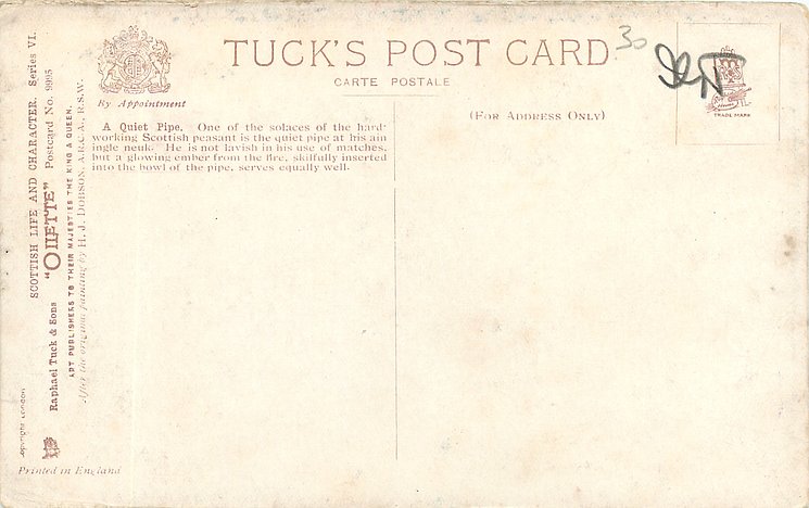 OILETTE, come Oilfacsim but not so trade-named. PRINTED IN ENGLAND with or w/o COPYRIGHT LONDON AFTER THE ORIGINAL PAINTING BY H.J. DOBSON, A.R.C.A. R.S.W., listed in1911/1912 & 1913/1914 &1930 POSTCARD Catalogues