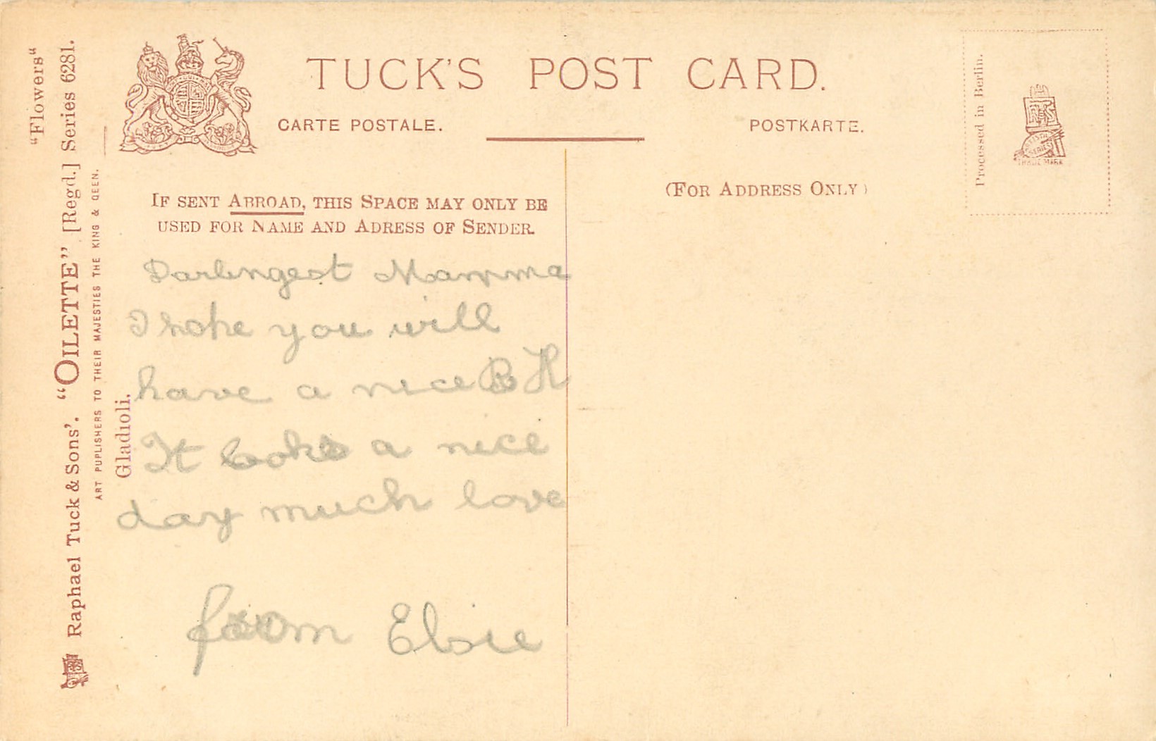 OILETTE, PROCESSED IN BERLIN (in stamp box), listed in 1908/1909 Catalogue
