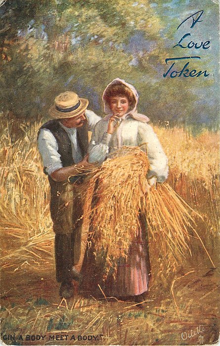 OILETTE, PRINTED IN ENGLAND, listed as CORNFIELD COURTSHIPS in 1908/1909 & 1911/1912 & 1913/1914 Postcard Catalogues