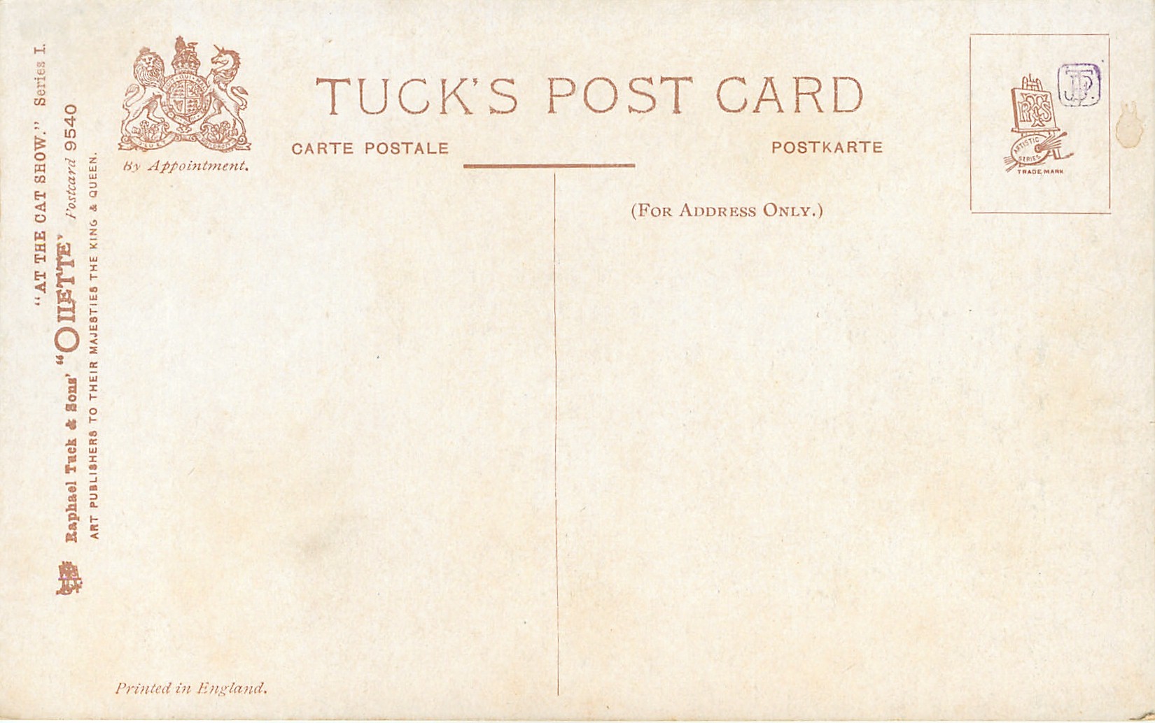 OILETTE, PRINTED IN ENGLAND, see Booth and Lund, listed in 1908/1909 & 1911/1912 &1913/1914 Postcard Catalogues