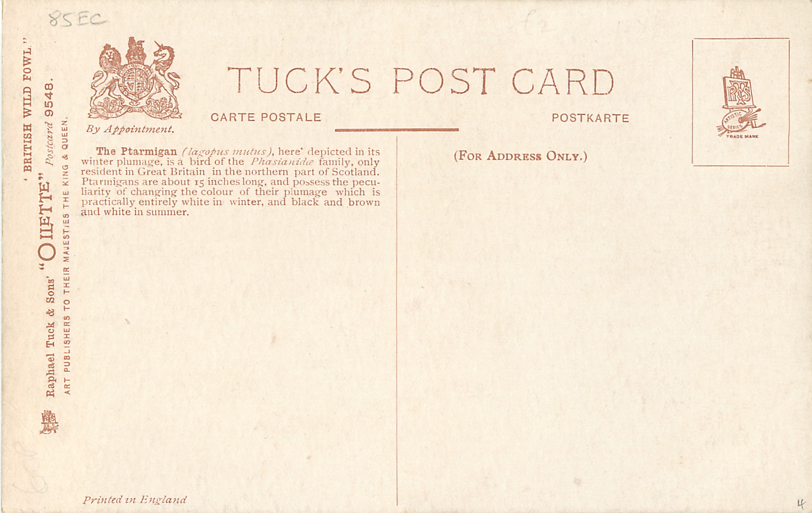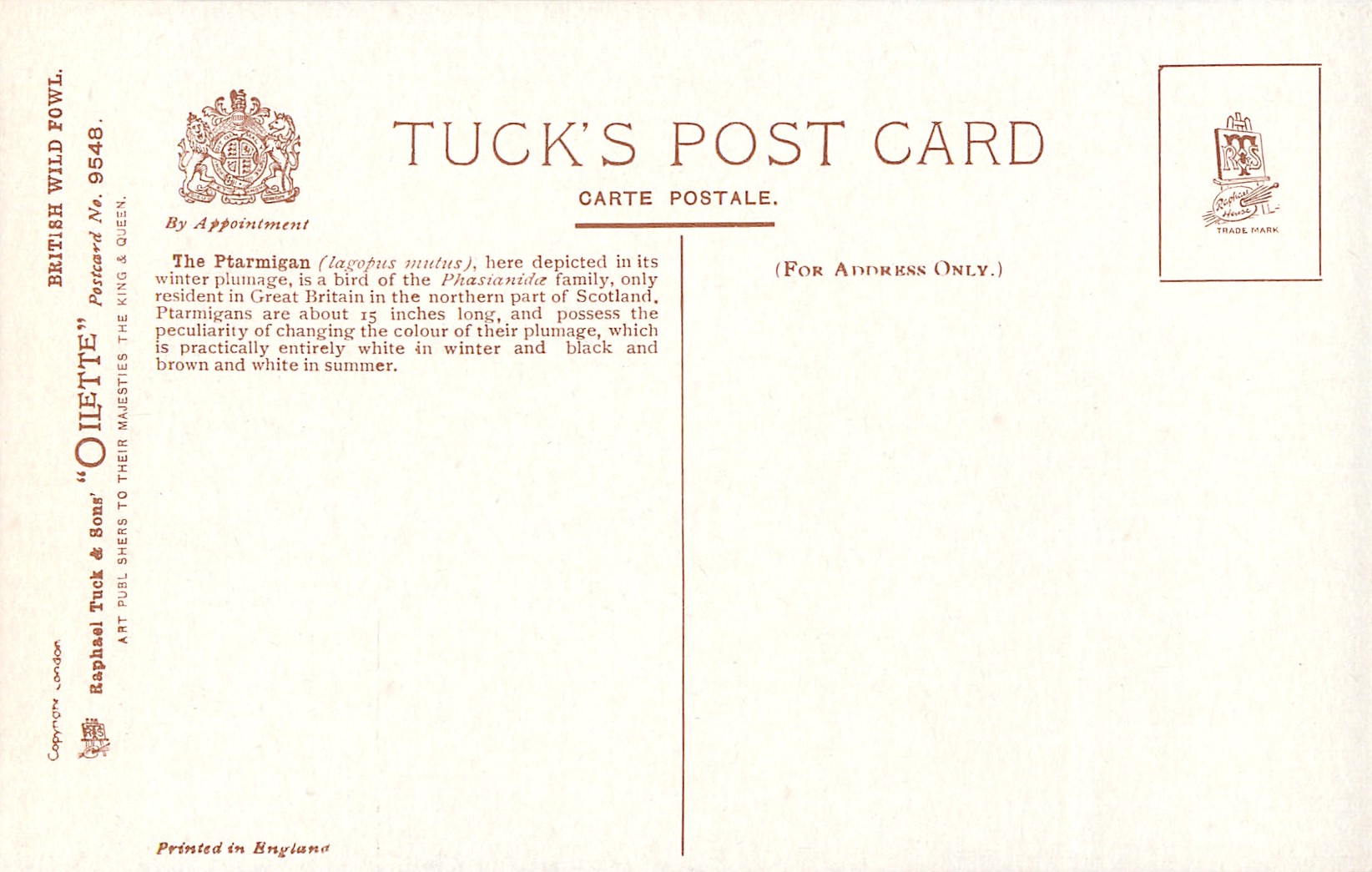 OILETTE, PRINTED IN ENGLAND, with or w/o COPYRIGHT LONDON, listed in 1926/1927 Postcard Catalogue