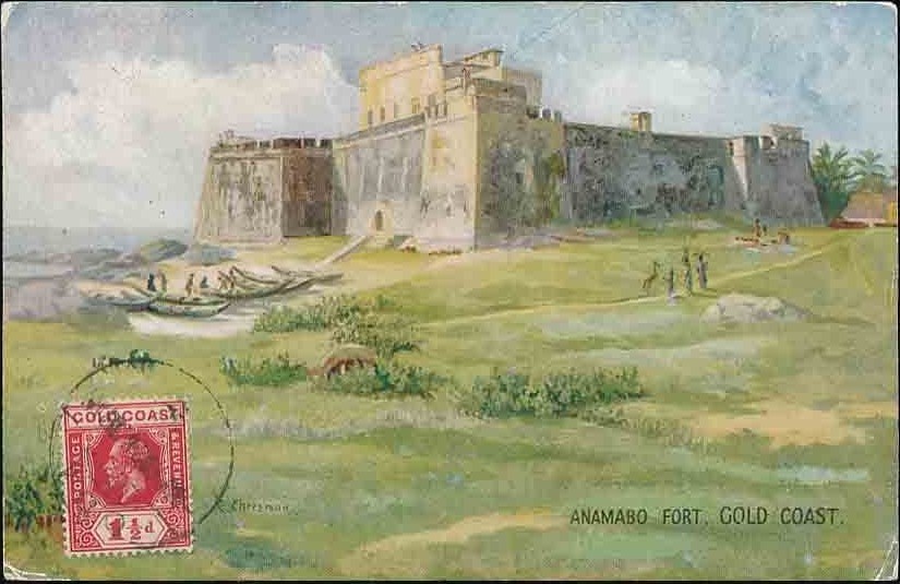 OILETTE (on front), PRINTED IN ENGLAND, 2 backs, COPYRIGHT GOLD COAST GOVERNMENT, for 1924 Wembley Exbn., see Perkins & Tonkin. come used as reward cards handstamped on back in green DERBYSHIRE EDUCATION COMMITTEE SCHOOL MUSEUM SERVICE