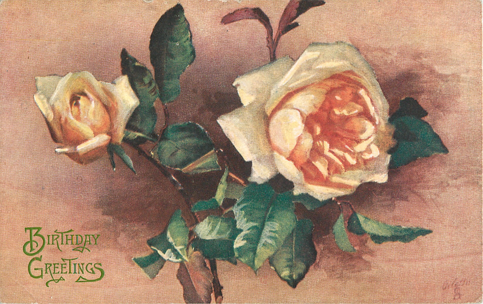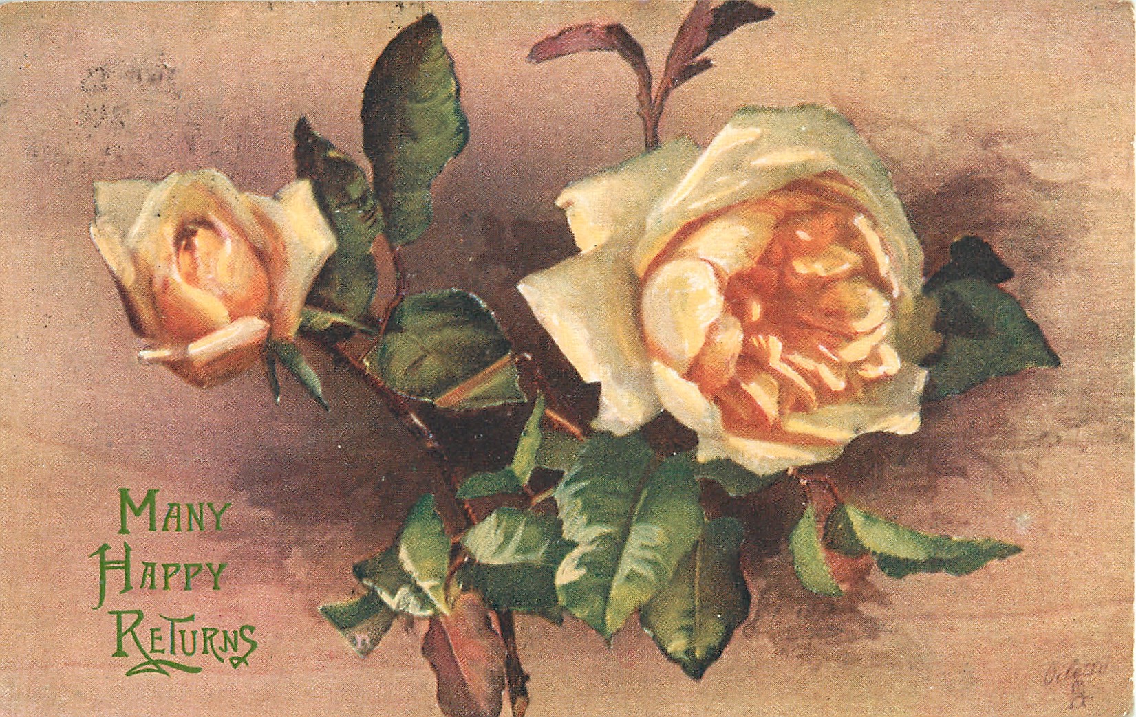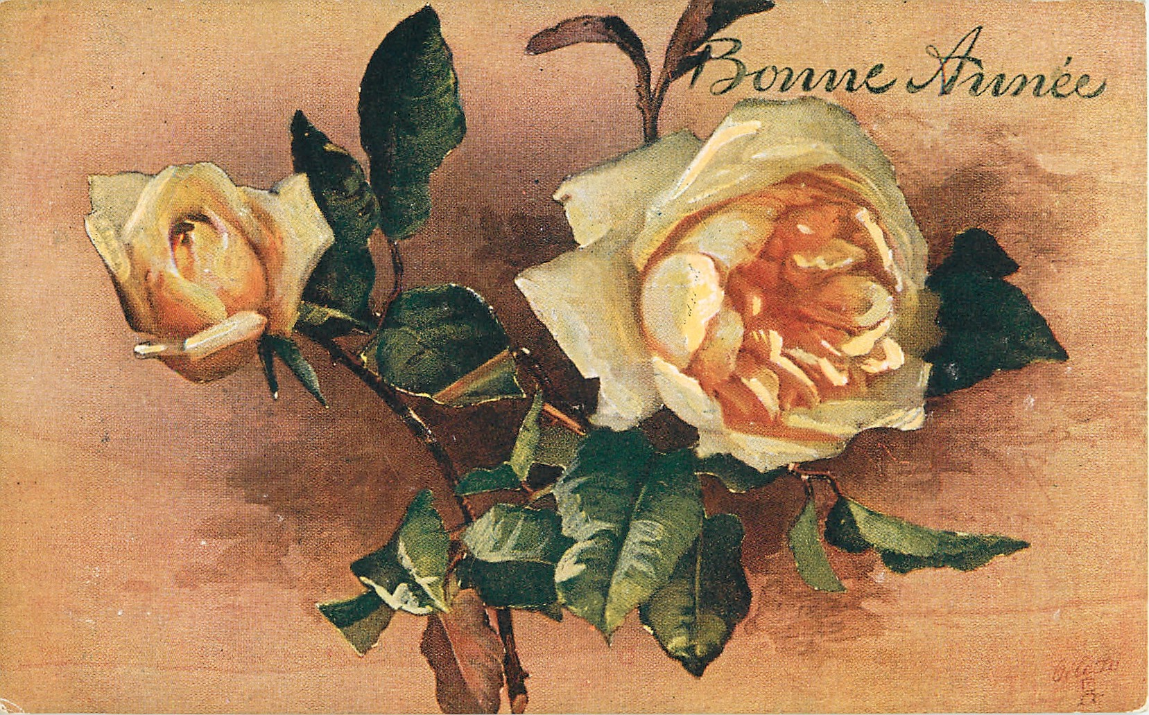 comes opt. in green BONNE ANNEE, A HAPPY BIRTHDAY verse, MANY HAPPY RETURNS, I SEND YOU MERRY GREETINGS verse, BIRTHDAY GREETINGS, WITH LOVE,
