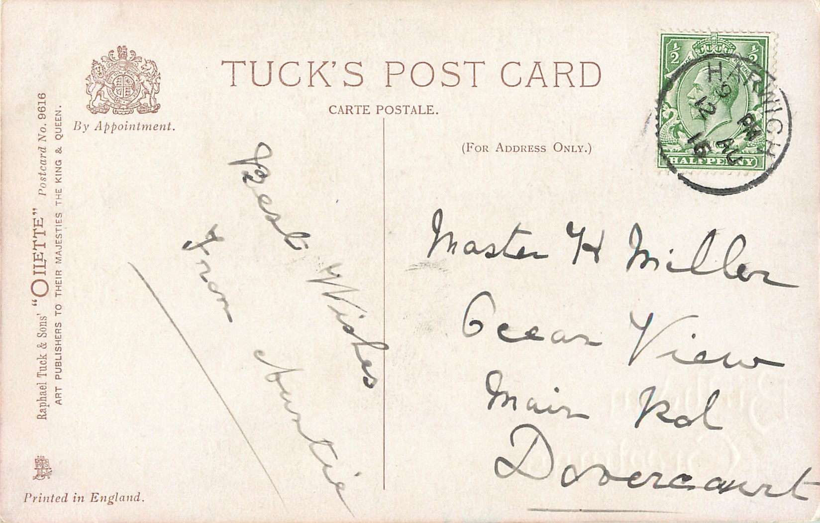 OILETTE, come Oilfacsim but not so trade-named, PRINTED IN ENGLAND or PRINTED IN UNITED KINGDOM, with or w/o COPYRIGHT LONDON, listed as FLORAL DESIGNS in 1911/1912 & 1912/1913 & 1913/1914 & 1930 POSTCARD Catalogues, listed in TUCK'S TRAVELOGUES (USA?1905)