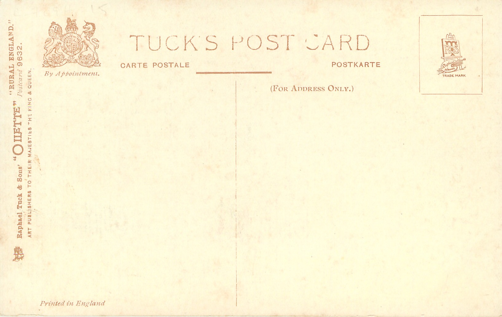 OILETTE, PRINTED IN ENGLAND, comes opt. with symbol AMERICAN Y.M.C.A., listed in 1911/1912 & 1912/1913 & 1913/1914 POSTCARD Catalogues