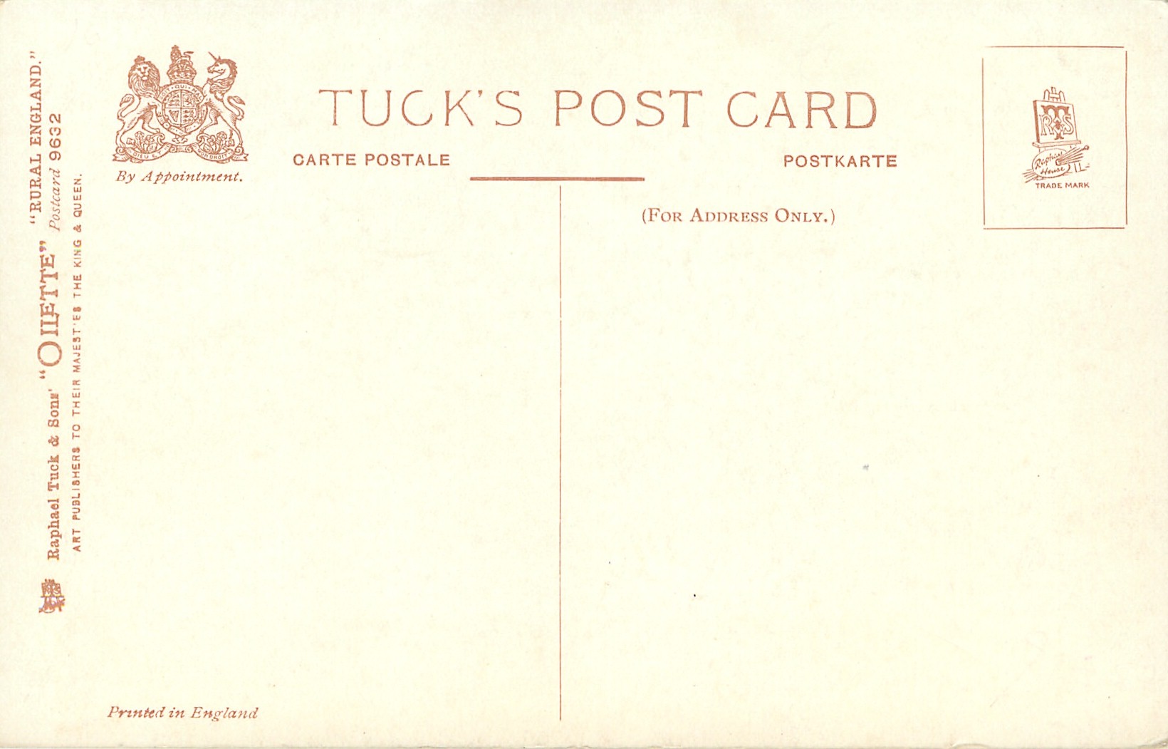 OILETTE, PRINTED IN ENGLAND, comes opt. with symbol AMERICAN Y.M.C.A., listed in 1911/1912 & 1912/1913 & 1913/1914 POSTCARD Catalogues