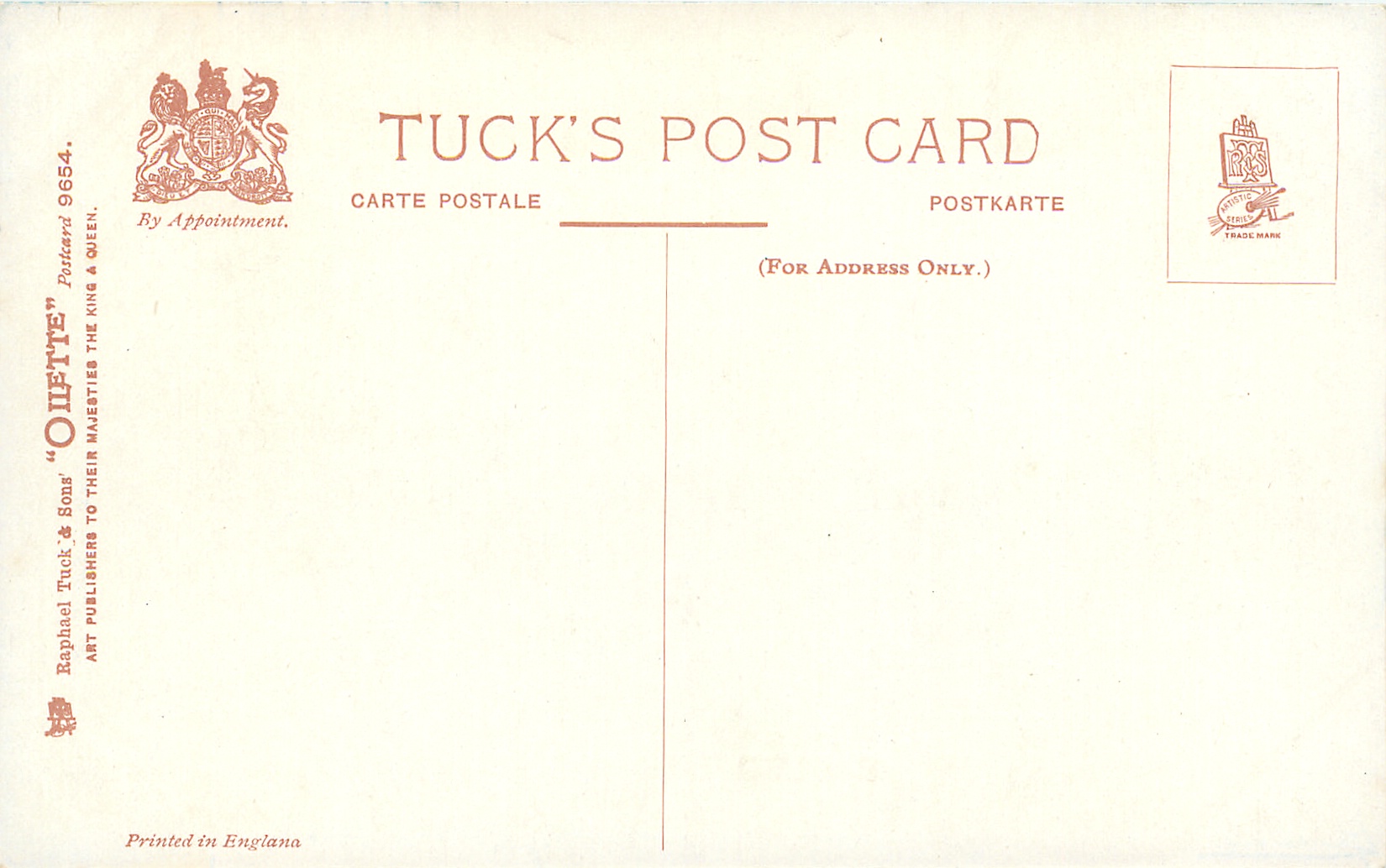 OILETTE, PRINTED IN ENGLAND, listed in 1911/1912 & 1913/1914 Postcard Catalogues