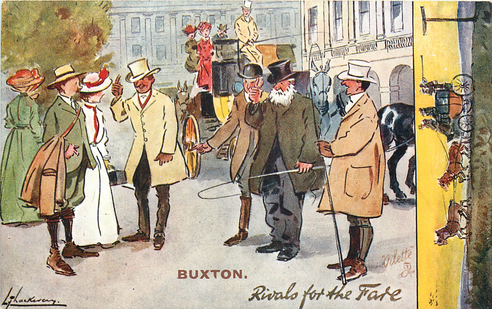 RIVALS FOR THE FARE several coachmen compete for business