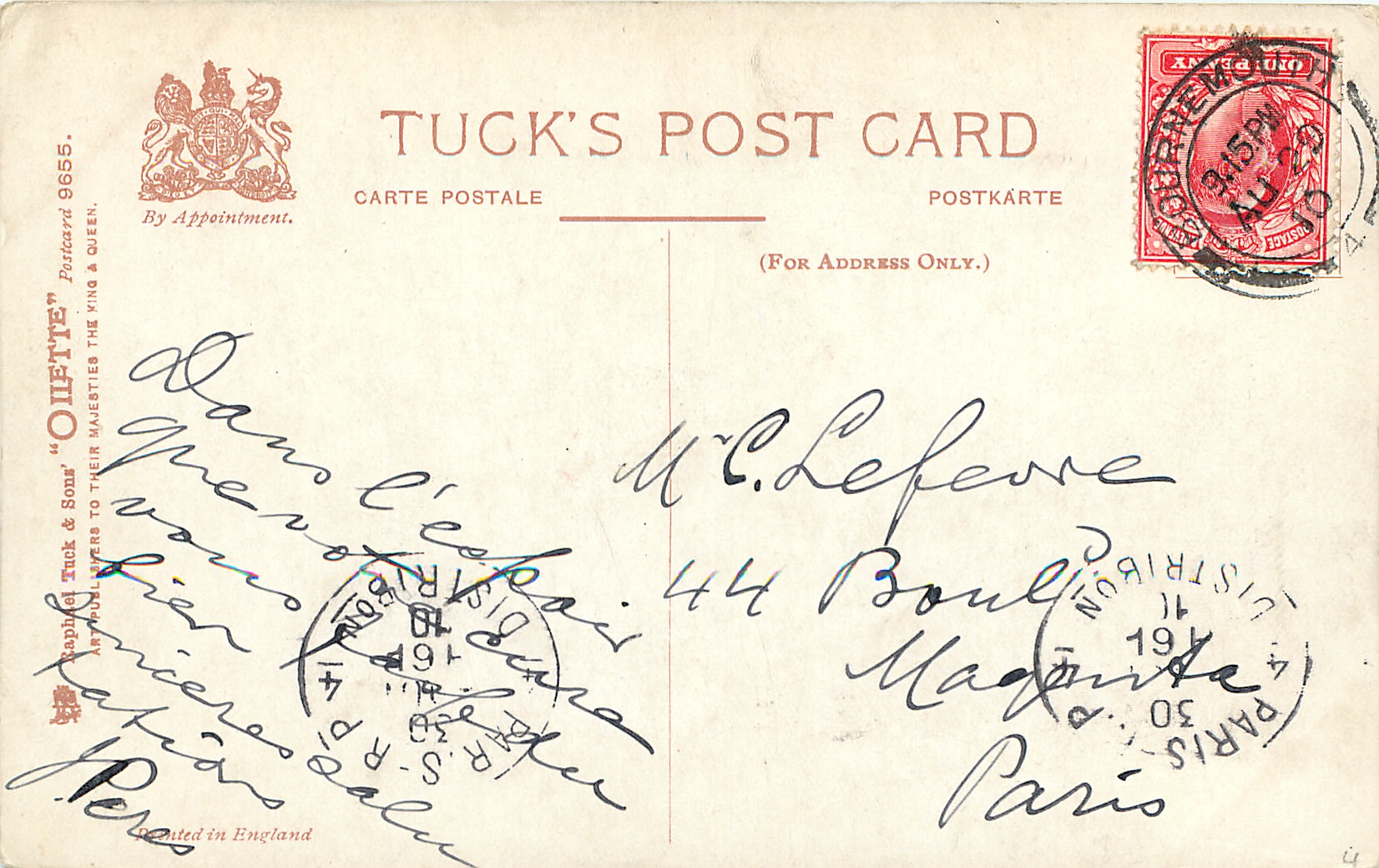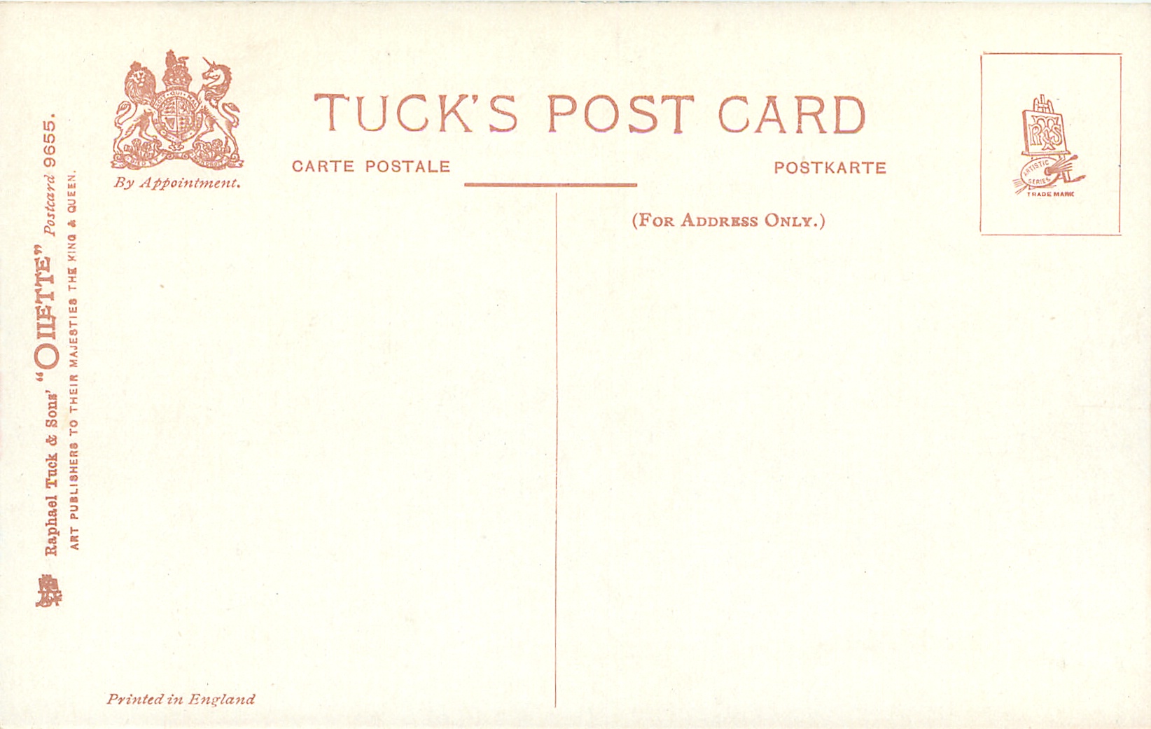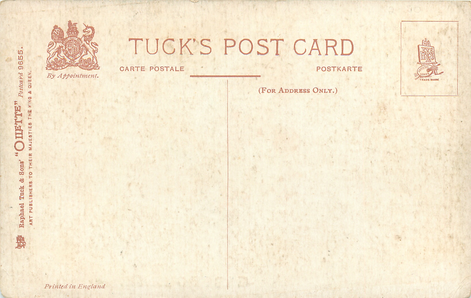 OILETTE, PRINTED IN ENGLAND, listed in 1911/1912 & 1913/1914 Postcard Catalogues