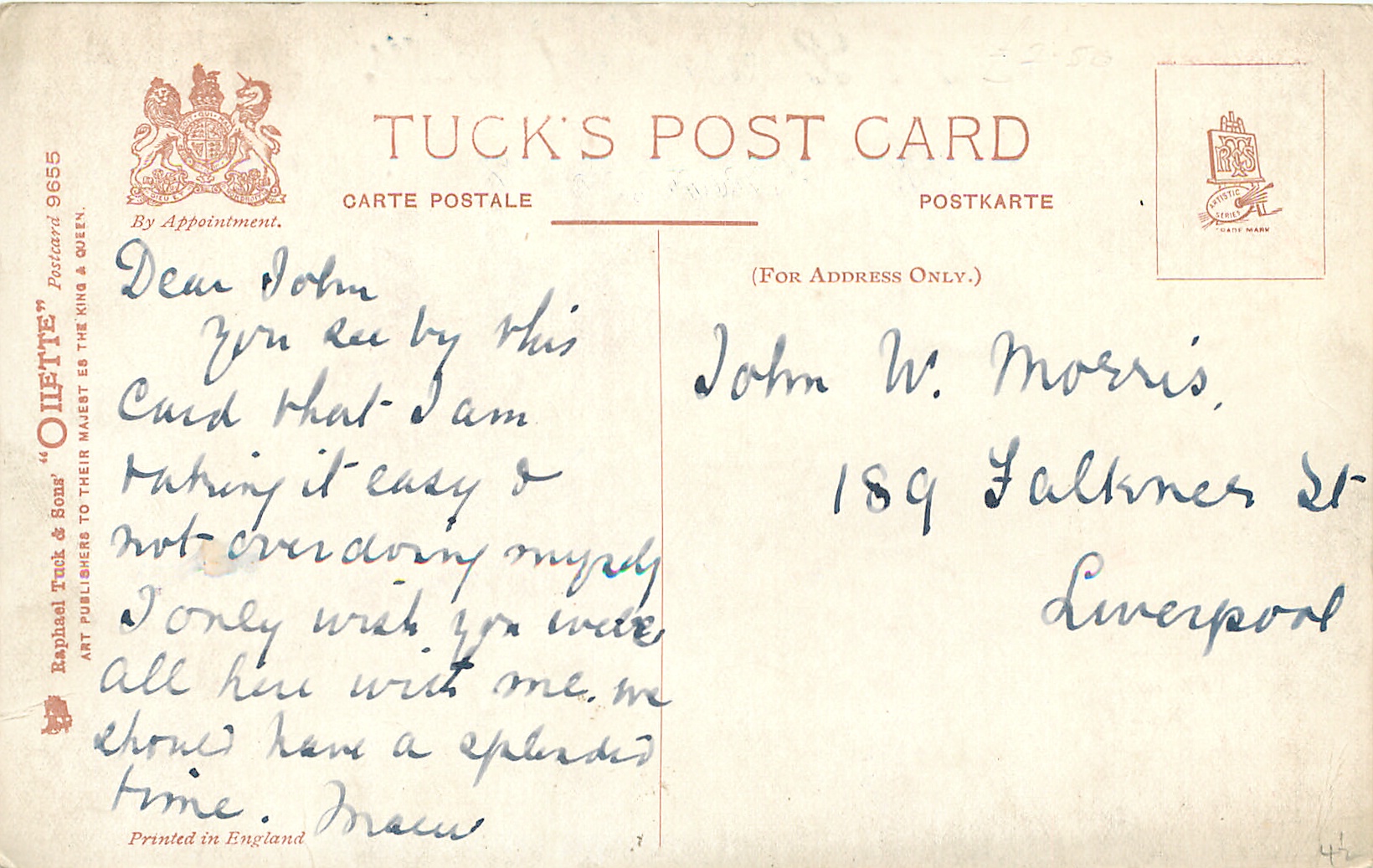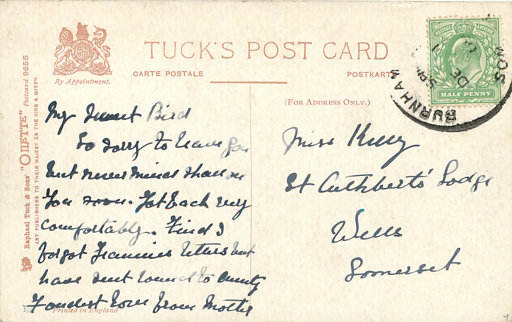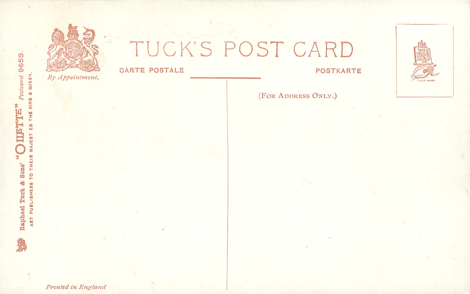 OILETTE, PRINTED IN ENGLAND, listed in 1911/1912 & 1913/1914 Postcard Catalogues