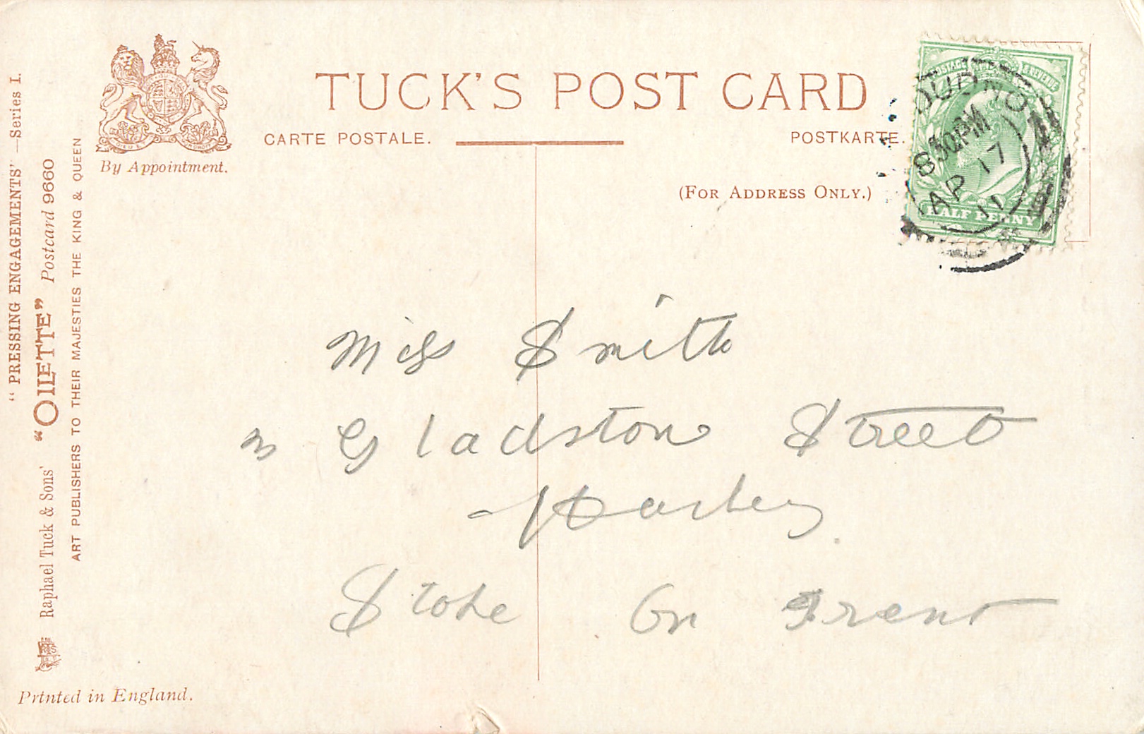 OILETTE, PRINTED IN ENGLAND, listed as ARE WE DOWNHEARTED? in 1911/1912 & 1913/1914 Postcard Catalogues