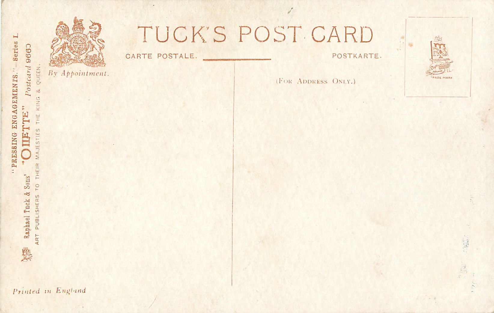OILETTE, PRINTED IN ENGLAND, listed as ARE WE DOWNHEARTED? in 1911/1912 & 1913/1914 Postcard Catalogues