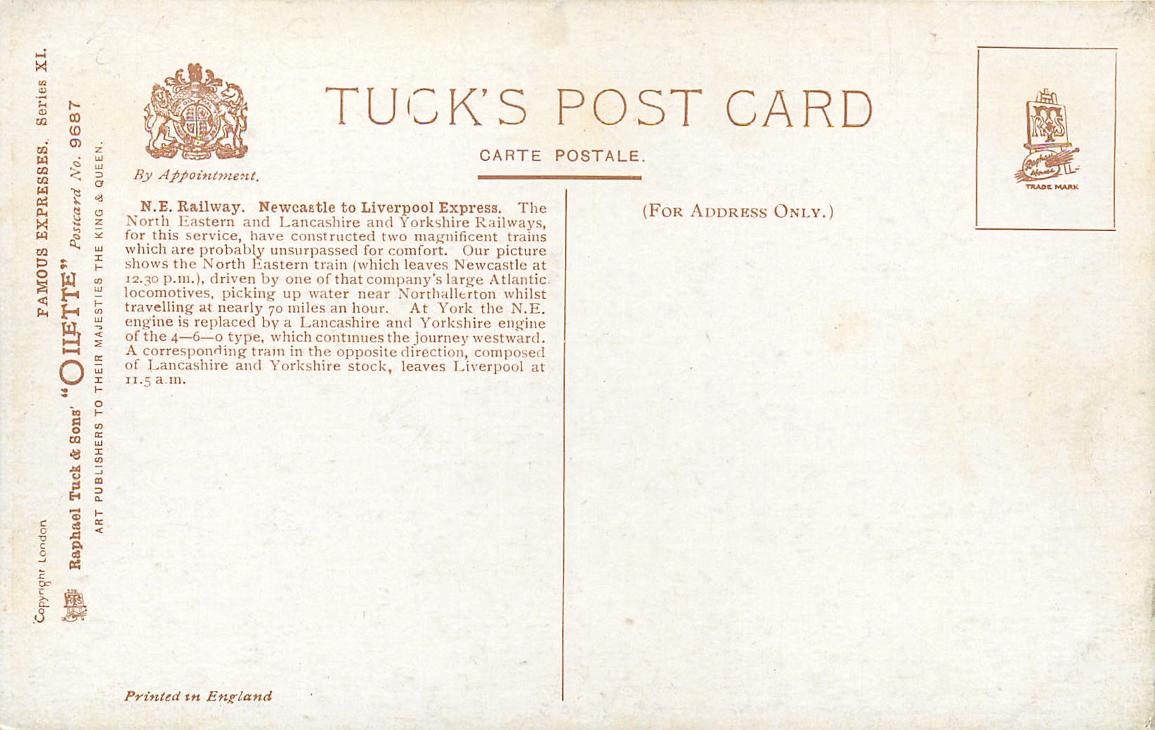 OILETTE, PRINTED IN ENGLAND or PRINTED IN UNITED KINGDOM, with or w/o COPYRIGHT LONDON, listed in 1913/1914 & 1926/1927 Postcard Catalogues