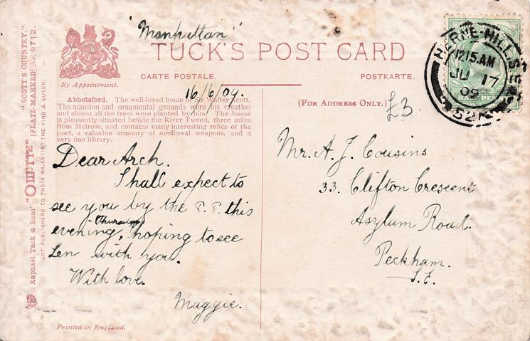 OILETTE, PLATE-MARKED, PRINTED IN ENGLAND, listed in 1908/1909 Catalogue