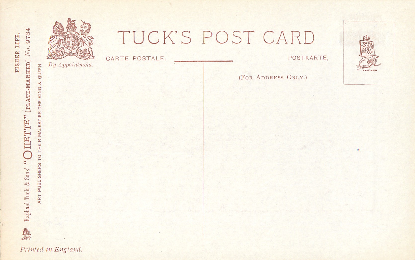 OILETTE, PLATE-MARKED, PRINTED IN ENGLAND, listed in 1908/1909 & 1911/1912 Postcard Catalogue, same images THE BREEZY SEA SERIES II