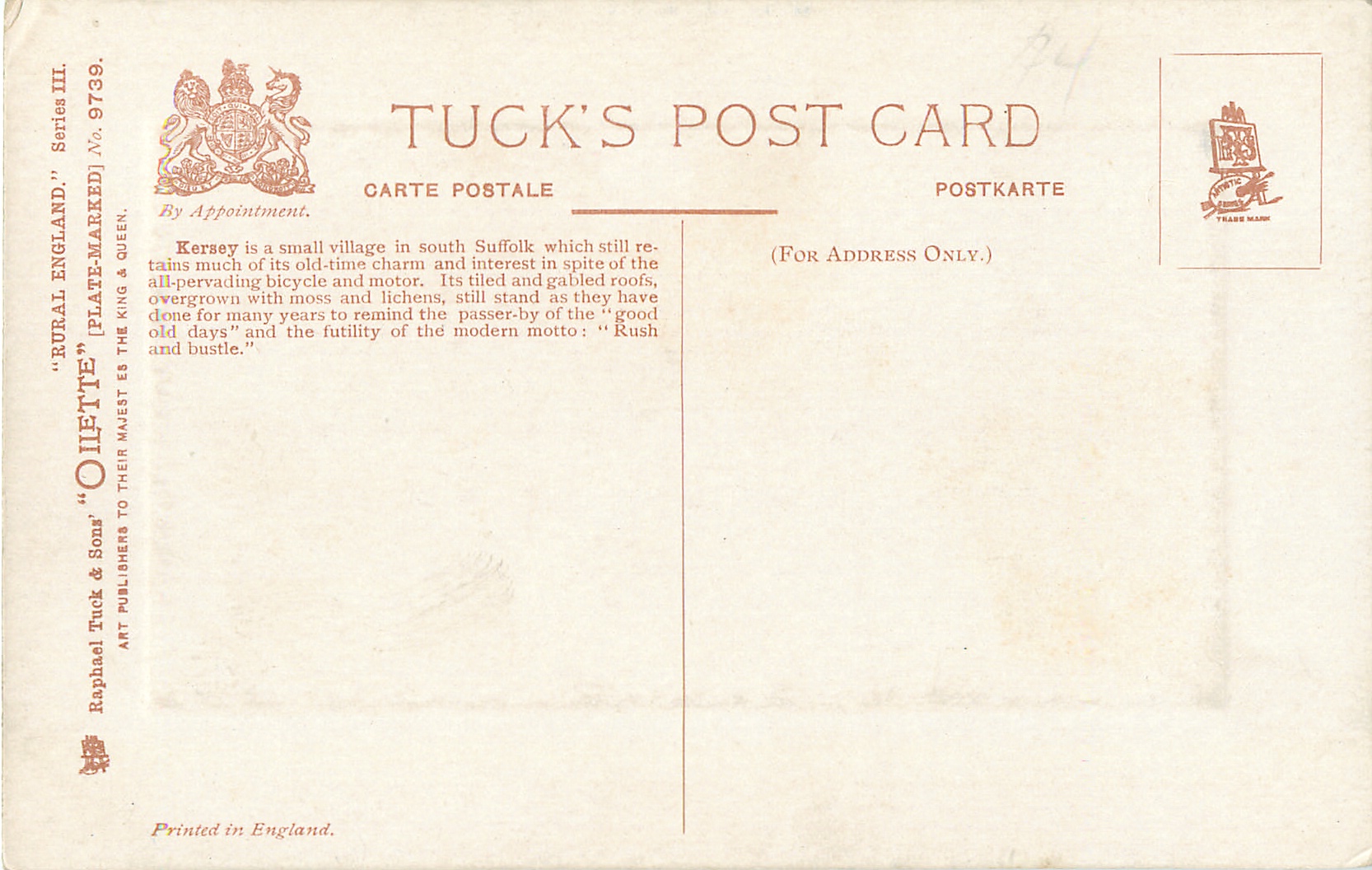 OILETTE, PLATE-MARKED, PRINTED IN ENGLAND, listed in 1908/1909 & 1911/1912 Postcard Catalogue