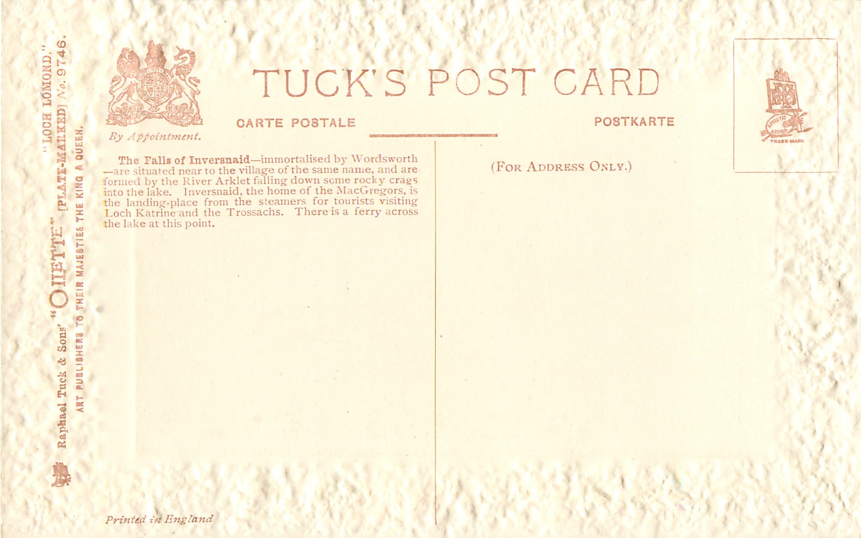 OILETTE, PLATE-MARKED, PRINTED IN ENGLAND, listed in 1908/1909 Catalogue