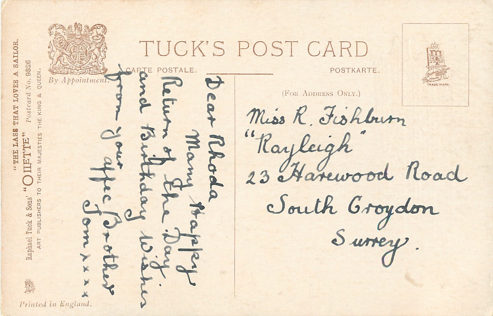 OILETTE, PRINTED IN ENGLAND, listed in 1911/1912 & 1913/1914 Postcard Catalogues