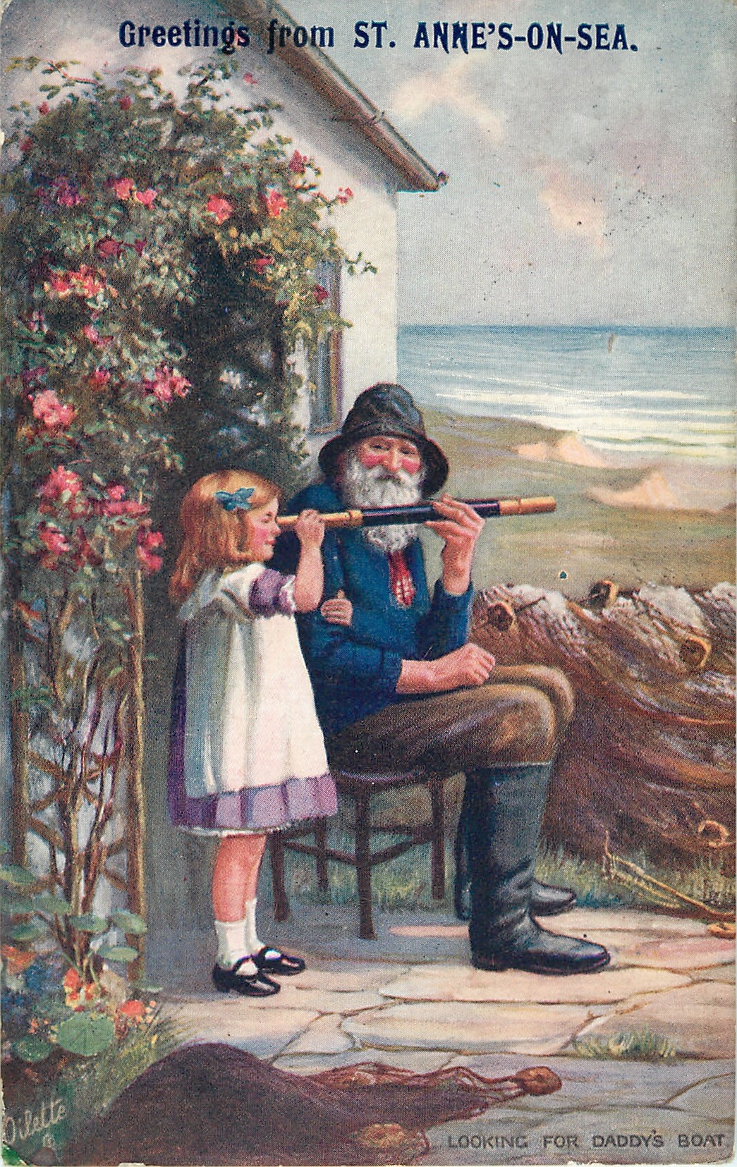 comes opt. in blue GREETINGS FROM ST. ANNE'S-ON-SEA, SALTCOATS, AT SALTBURN-BY-THE-SEA, BLACKPOOL, YOUNG AND OLD LOVE LOWESTOFT