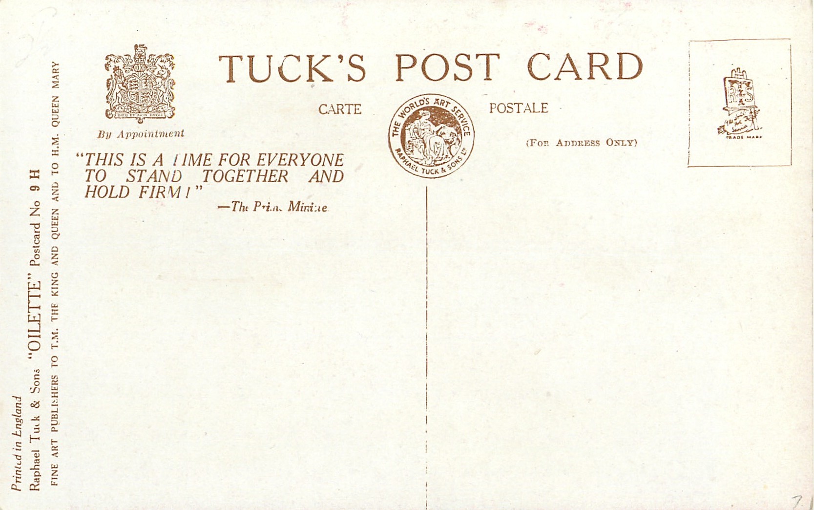 OILETTE, PRINTED IN ENGLAND, patriotic slogan on back