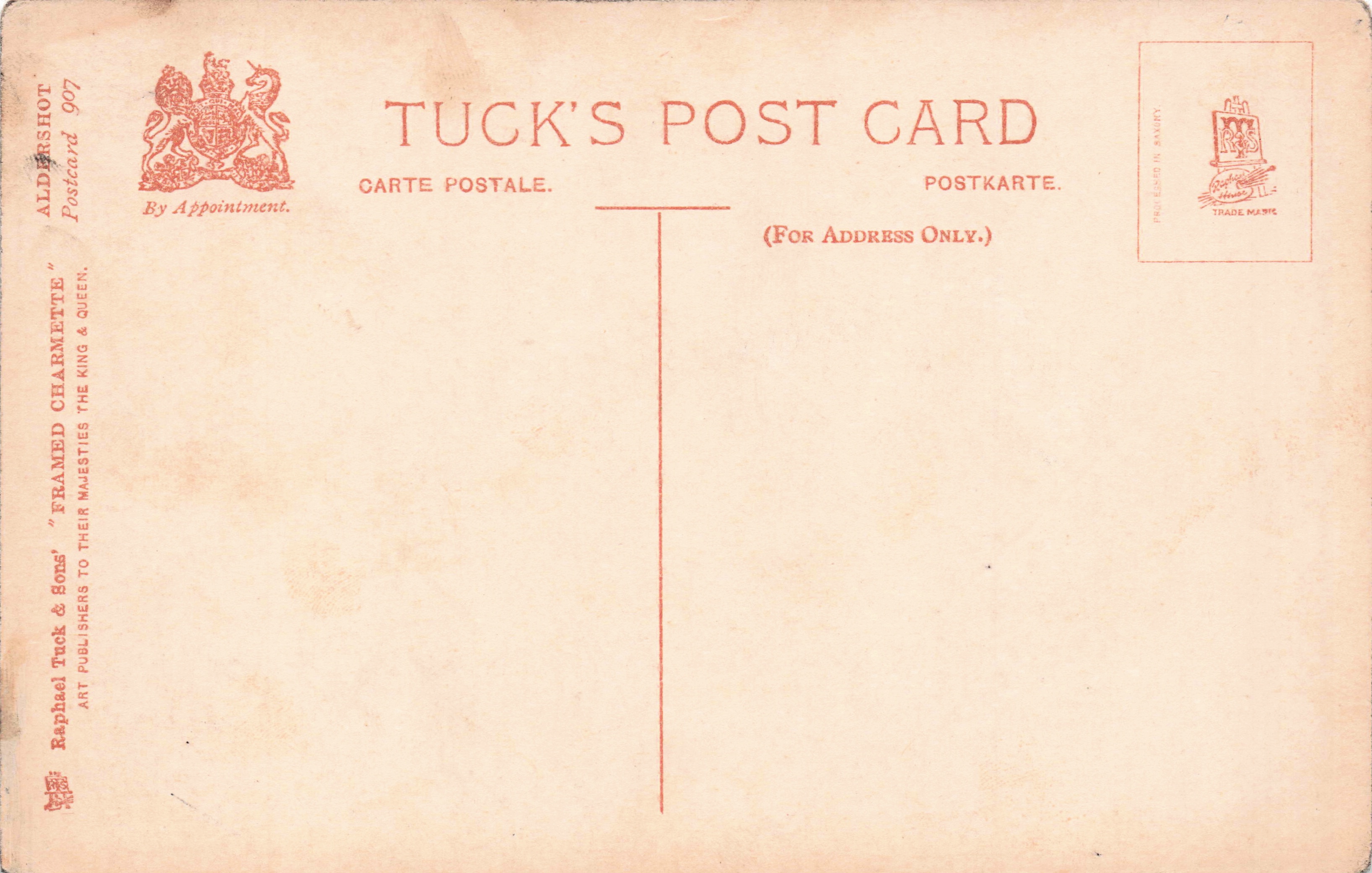 FRAMED CHARMETTE, PROCESSED IN SAXONY (in stamp box), listed in 1912 Catalogue