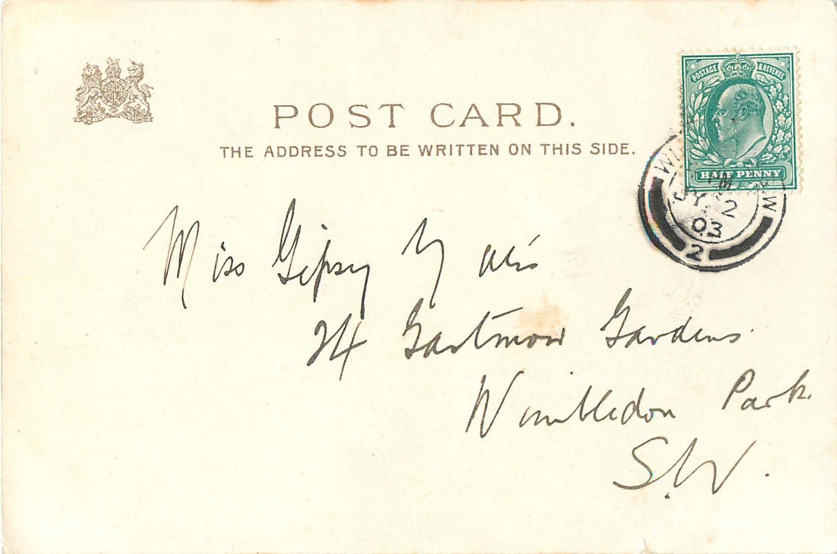 WRITE AWAY, u/b, DESIGNED IN ENGLAND, CHROMOGRAPHED IN GERMANY, listed in 1904 POSTCARD Catalogue
